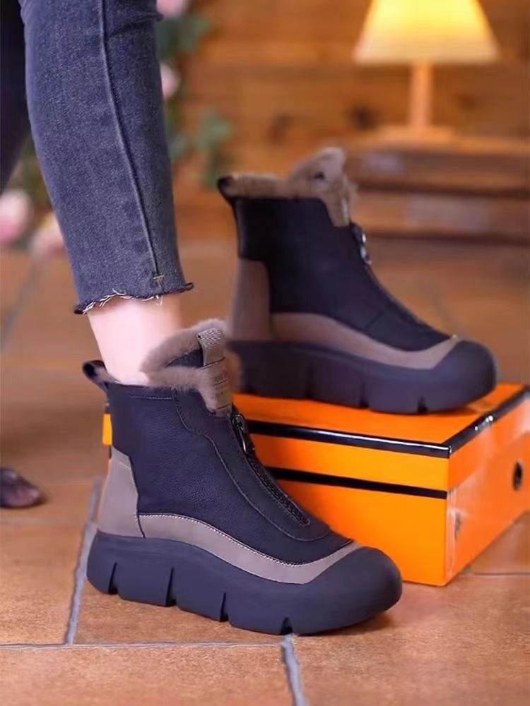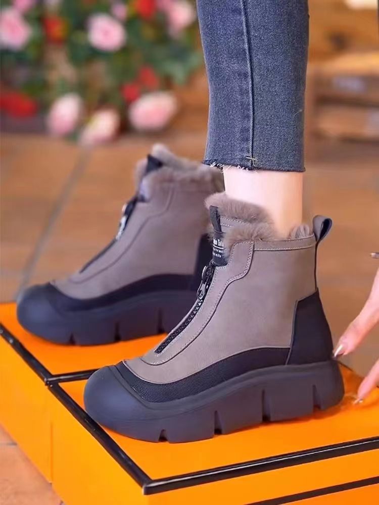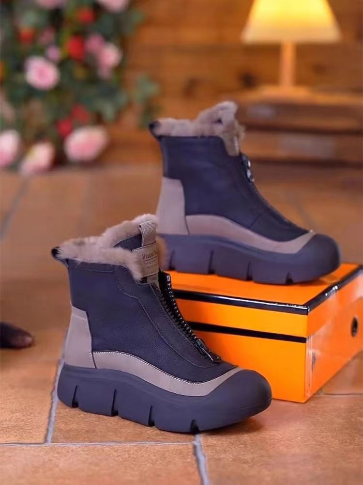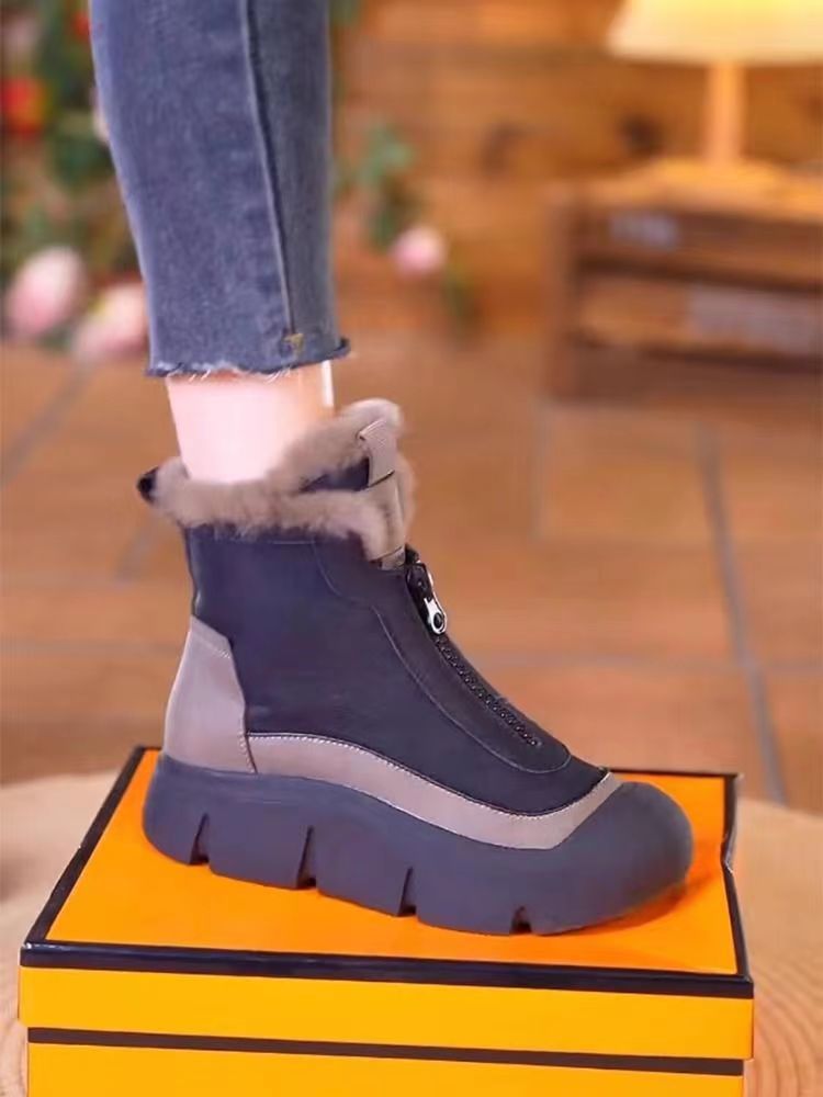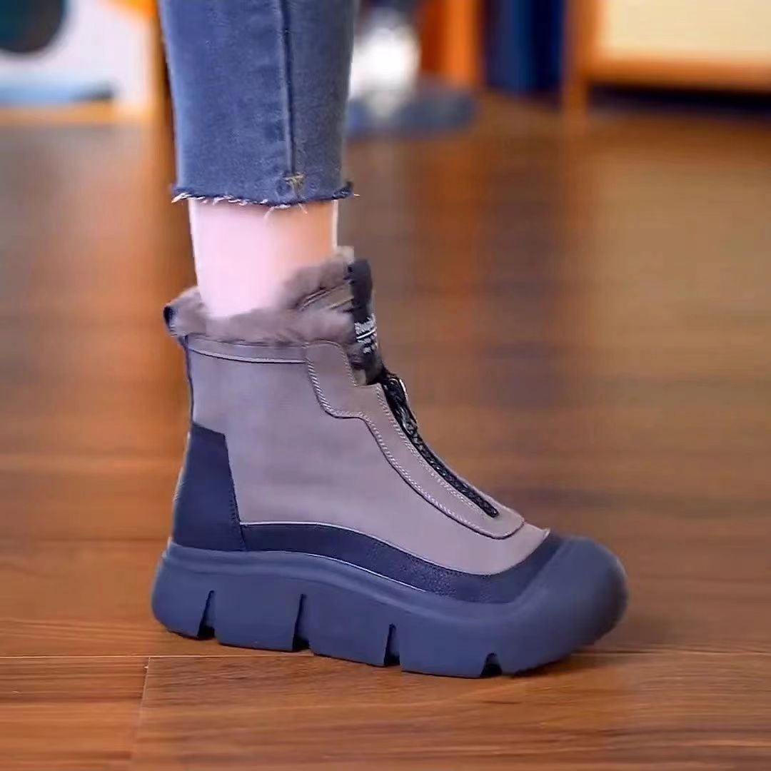 أحذية ثلجية للنساء 2025 الشتاء الجديد على غرار كعكة إسفنجة سميكة ذات شجاعة قصيرة من أحذية مارتن بالإضافة إلى أحذية قطنية دافئة مخملية غير رسمية أحذية قصيرة قصيرة