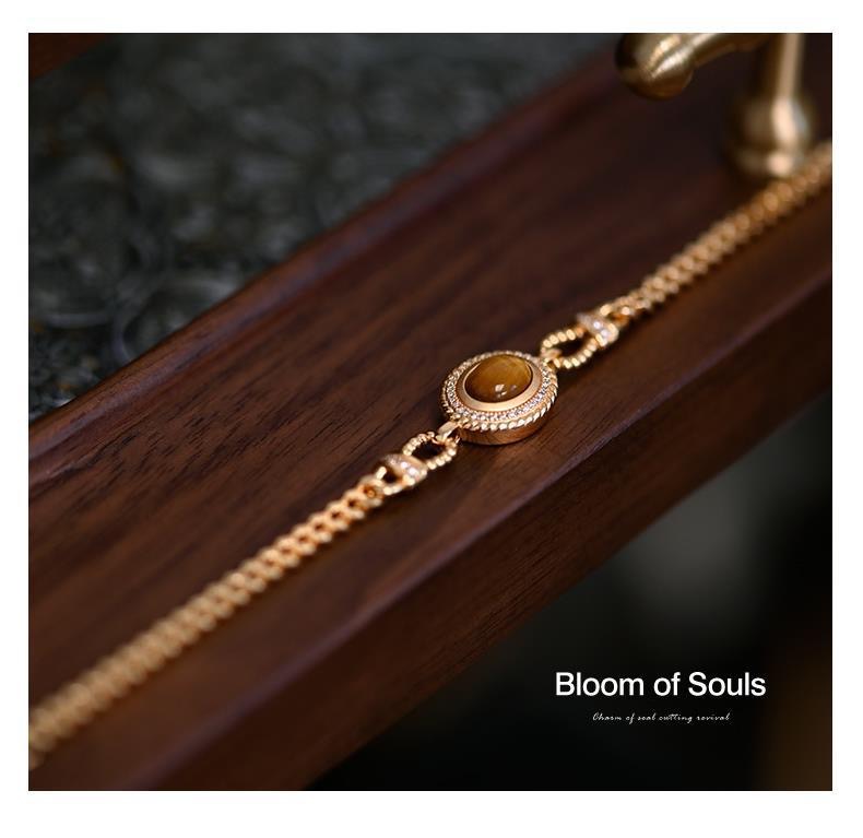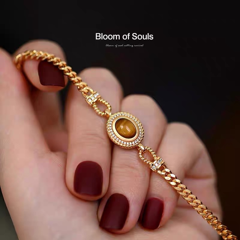 التصميم الأصلي 925 الفضة الاسترليني عين النمر حجر سوار الفرنسية اليدوية الرجعية سلسلة رائعة