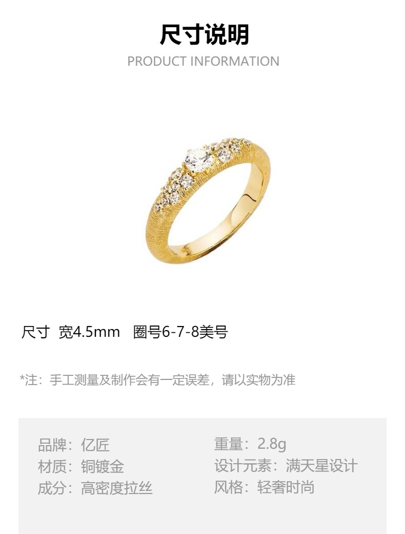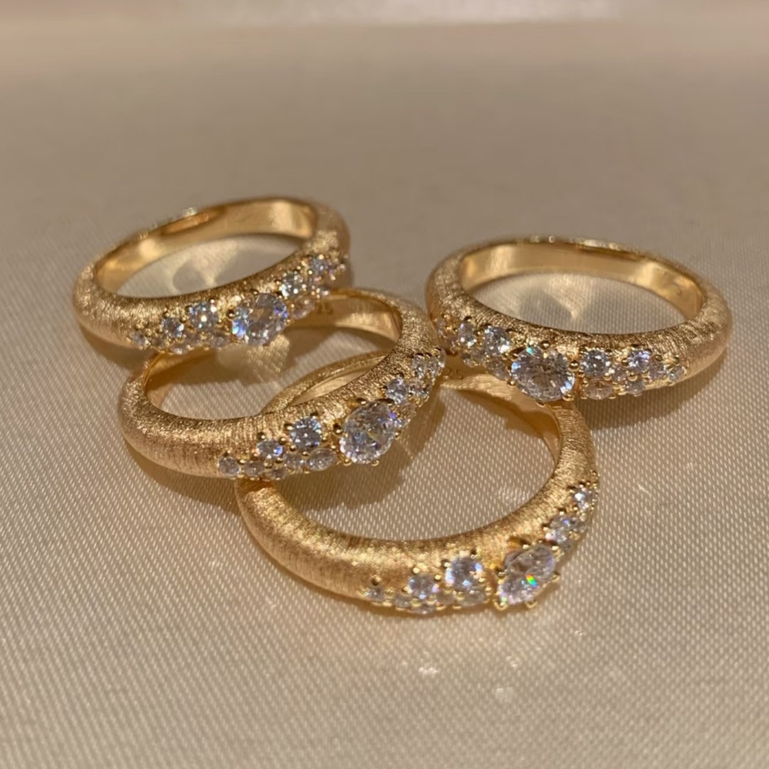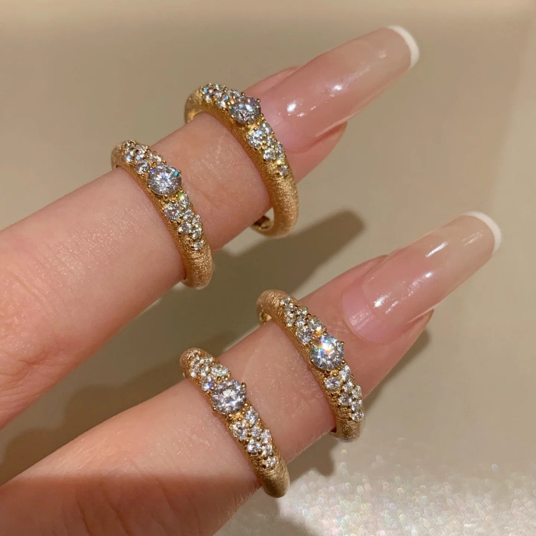 خاتم نهر النجوم المتناثرة الذهبي المرصع