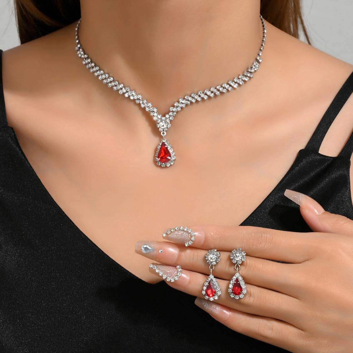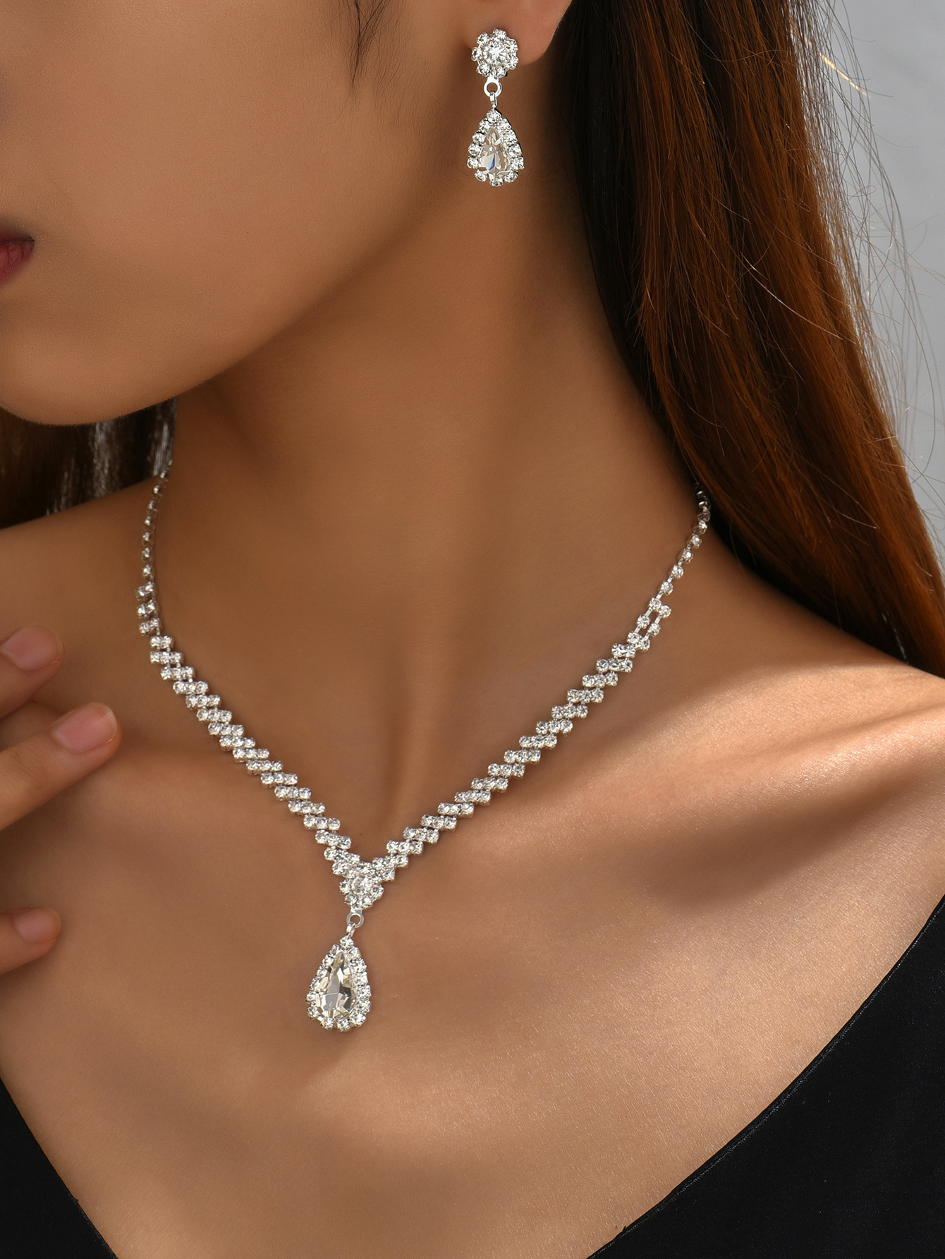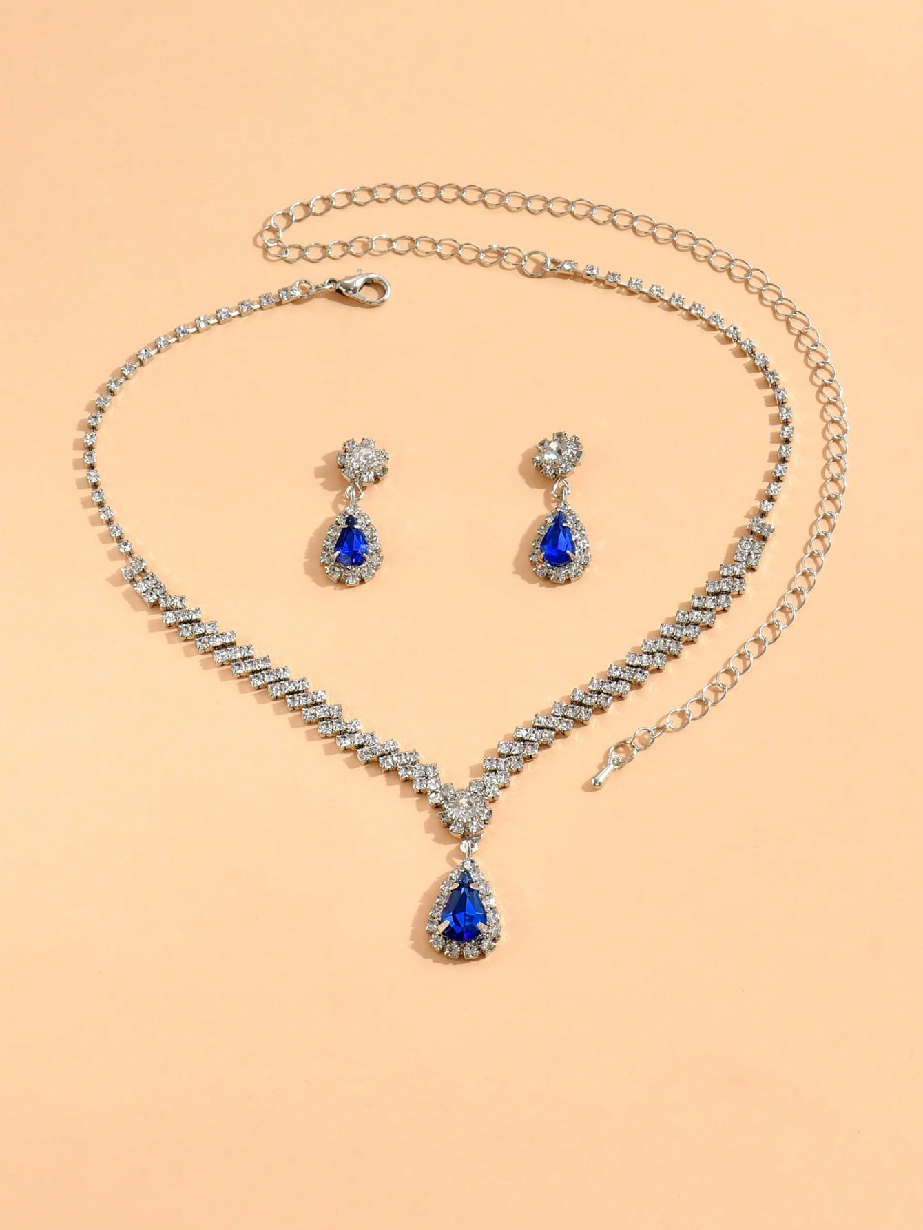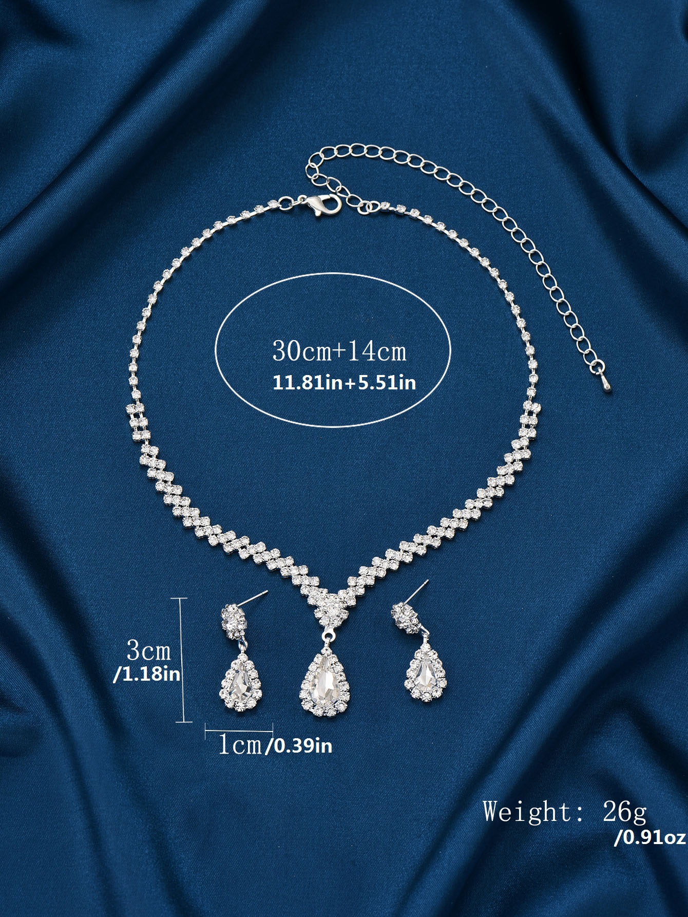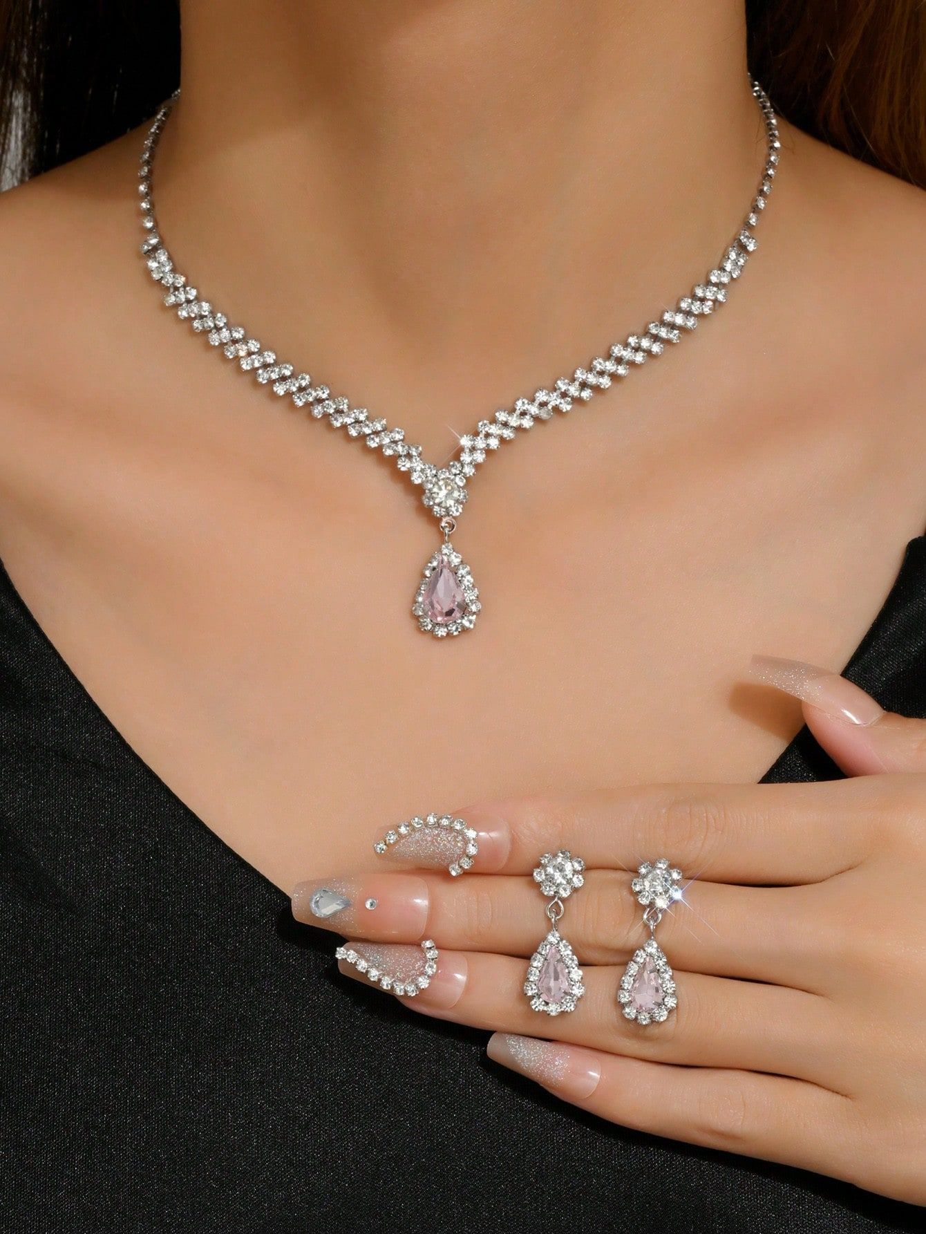 مجموعة مجوهرات للعروس باللون الذهبي عبارة عن قلادة وحلقان مرصعة بالكريستال وحجر الراين اللامعة مكونة من 3 قطع (2 حلق و1 قلادة) تصميمها مناسب للمناسبات الرسمية والاحتفالات الخاصة بالنساء والفتيات