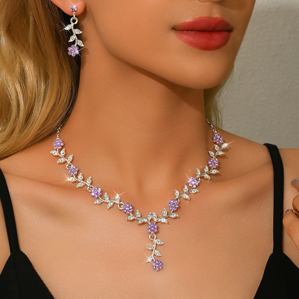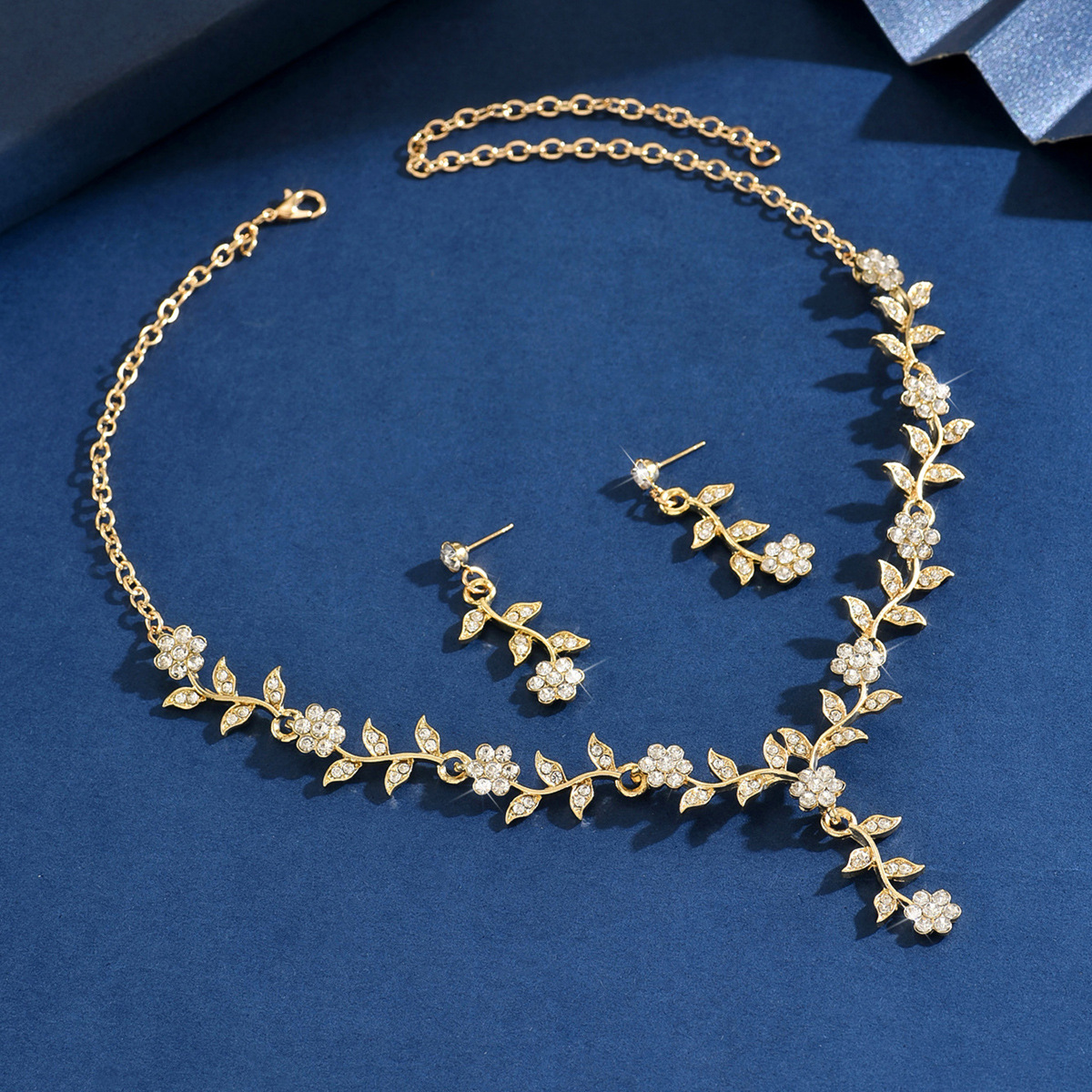 أوروبا والولايات المتحدة مجموعة الزفاف خمر 100 زهرة سبيكة حجر الراين قلادة أقراط الزفاف مجوهرات الزفاف مأدبة السيدات