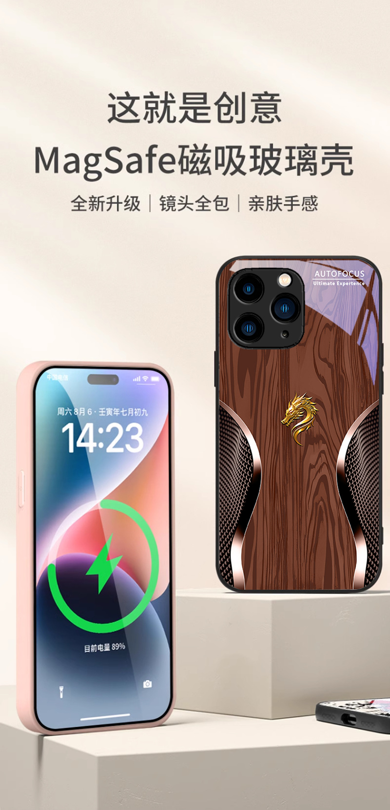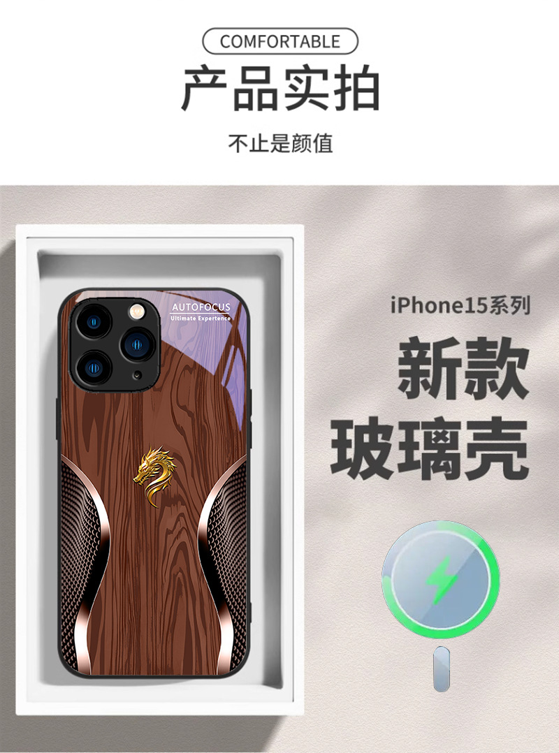 قابلة للتطبيق على Apple 15Plus Phone Case 16 Light Luxury 14 Mesh Dragon Head 13 Wood Grain Promax الصينية على الطراز الصيني 12