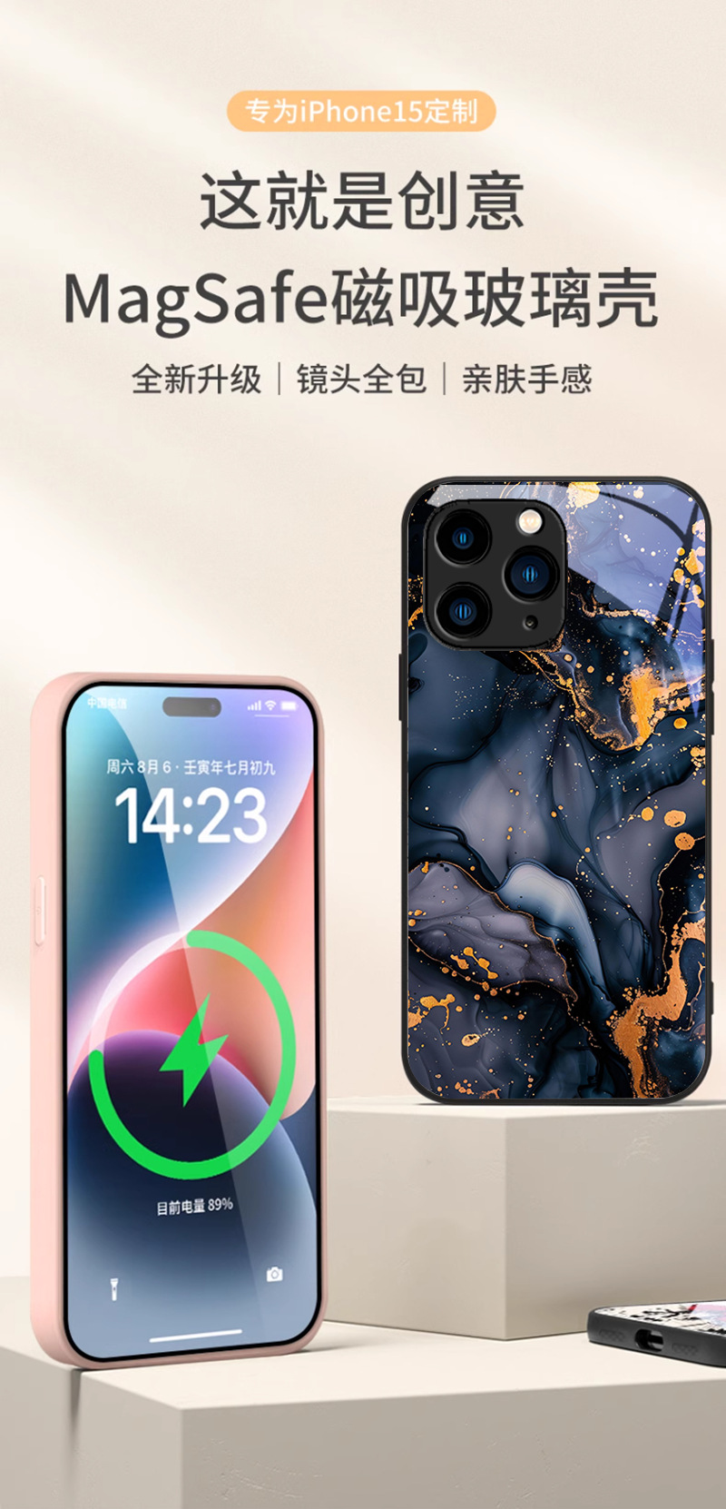 قابلة للتطبيق على Apple 15Pro Phone Case 13 Marble Pro Magnetic Excorption 14 Smudge 11 Gilding 12 Art 16 Advanced