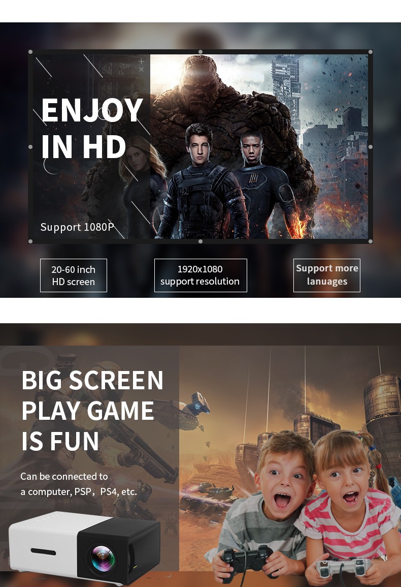 جهاز عرض Yg300 للاستخدام المنزلي، جهاز عرض شاشة للأطفال، جهاز عرض على جدار غرفة النوم، يدعم جهاز عرض صغير محمول عالي الوضوح بدقة 4K