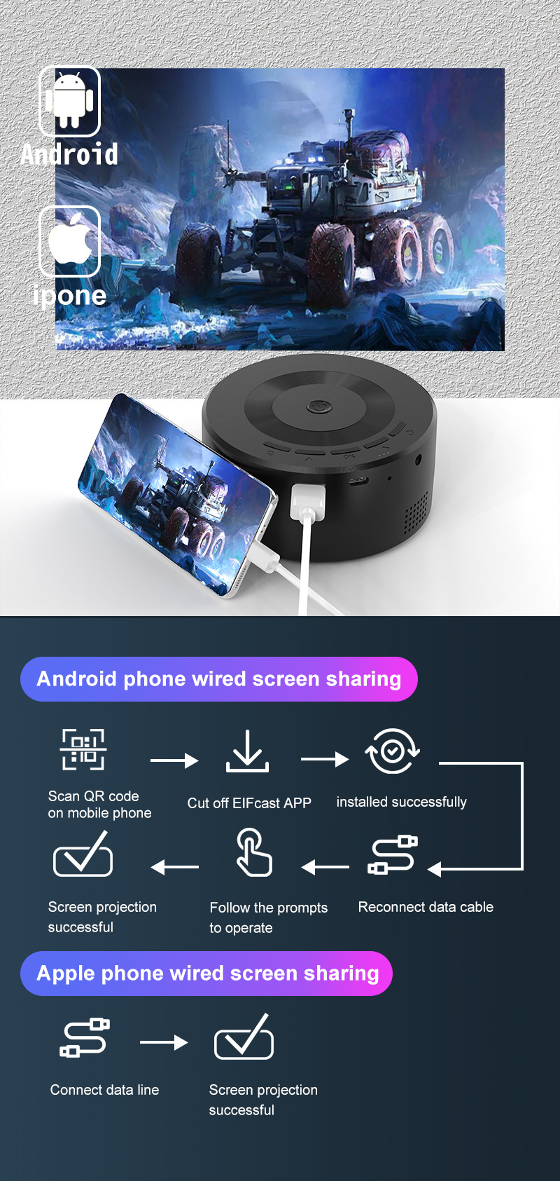 جهاز عرض Yt200 المنزلي صغير الحجم محمول ومناسب للأطفال ومتوافق مع أجهزة عرض رقمية لهواتف Android وApple