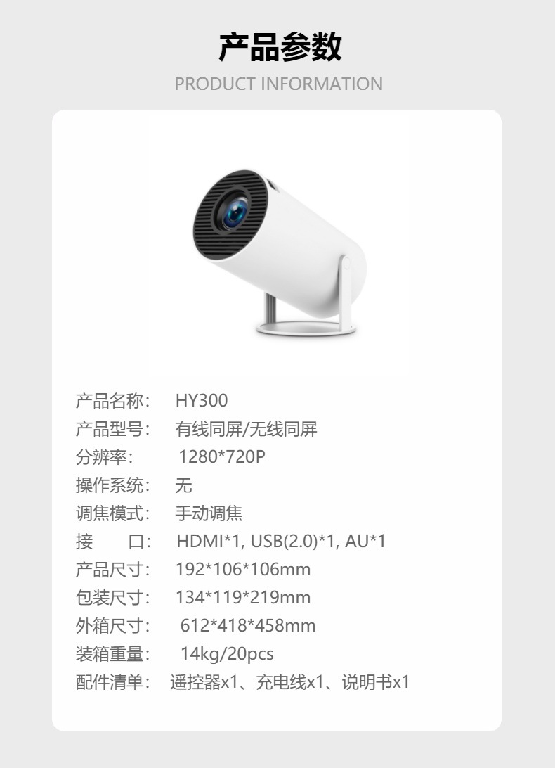 جهاز عرض Hy300 عبر الحدود منزلي عالي الوضوح لاسلكي بنفس الشاشة لغرفة النوم جهاز عرض جداري من النوع C جهاز عرض محمول يعمل بالطاقة