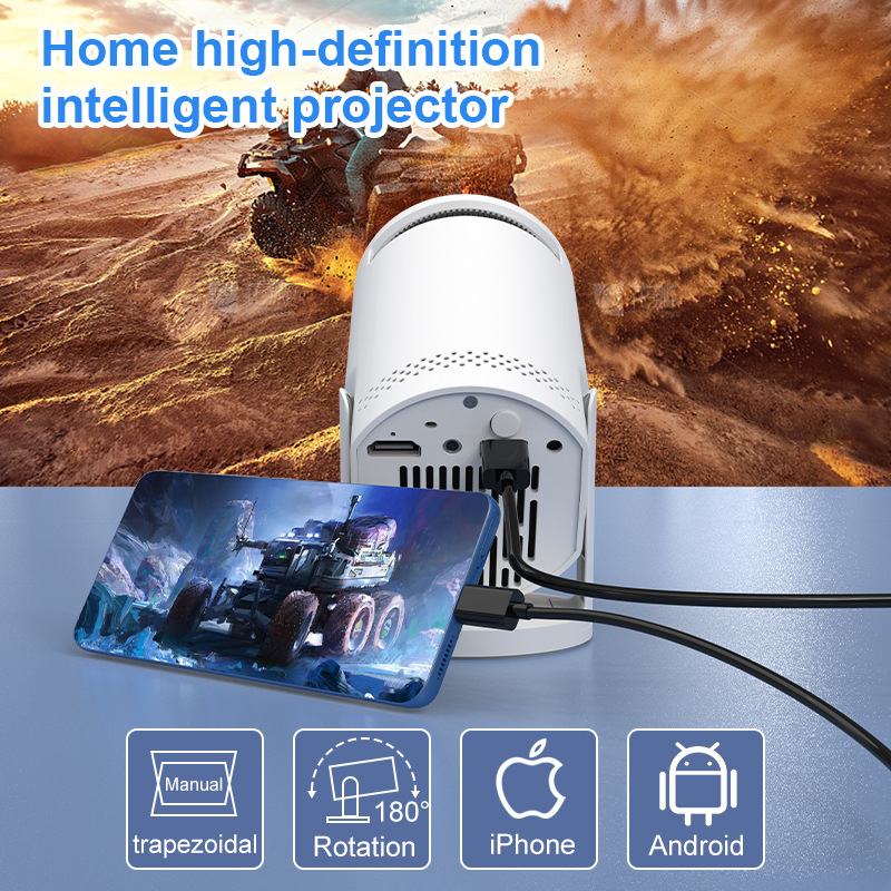 جهاز عرض Hy300 عبر الحدود، جهاز عرض منزلي عالي الدقة للهاتف المحمول، شاشة عرض لاسلكية، جهاز عرض محمول صغير الحجم