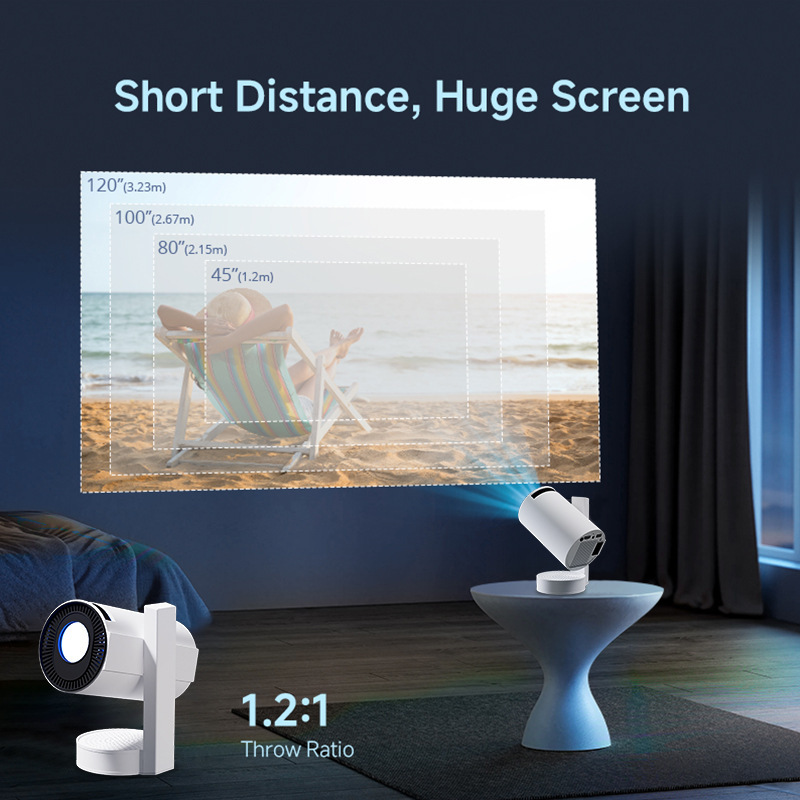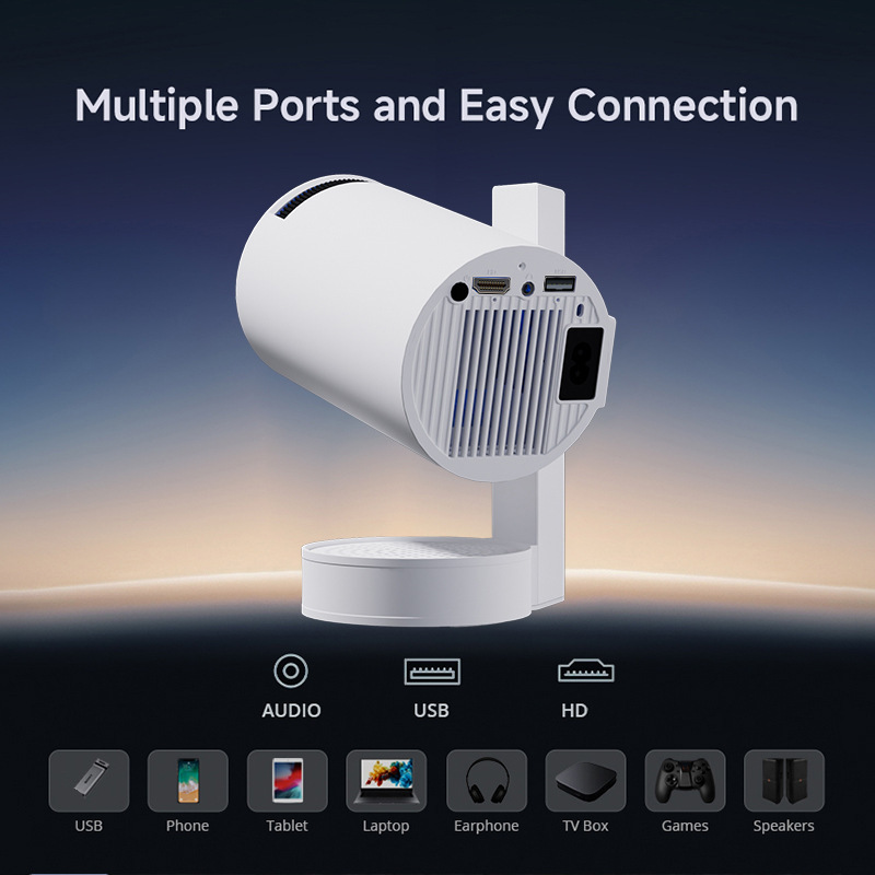 جهاز عرض أسطواني عبر الحدود للاستخدام المنزلي، مكبر صوت مستقل عالي الوضوح، جهاز عرض لاسلكي للشاشة، جهاز عرض على جدار غرفة النوم، جهاز عرض قابل للإمالة