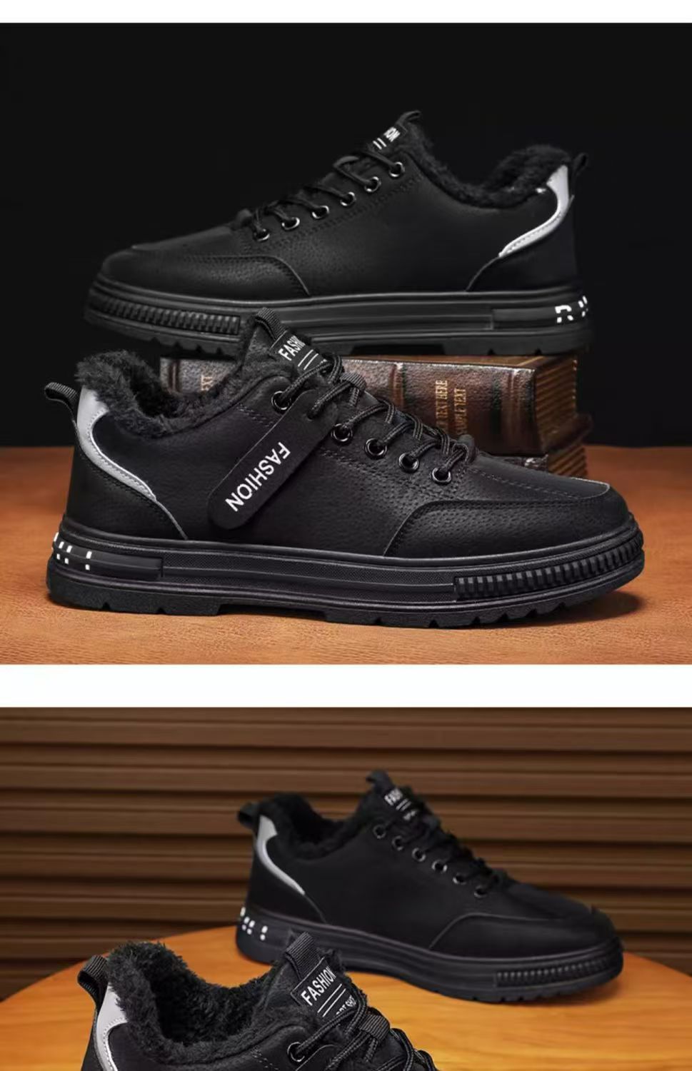 أحذية رجالية 2025 موقع بناء شتوي جلد للعمل مقاوم للماء ومضاد للانزلاق ومقاوم للاهتراء أحذية عمل مقاومة للبرودة ودافئة أحذية قطنية مبطنة بالصوف