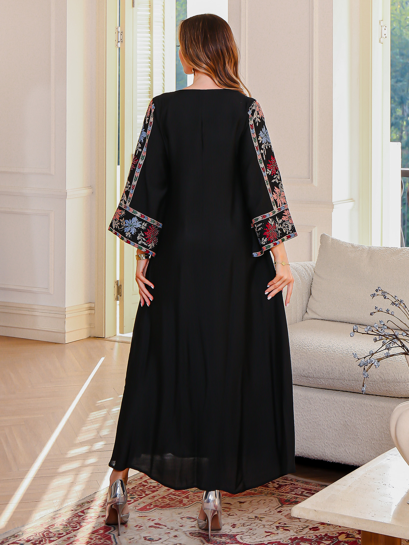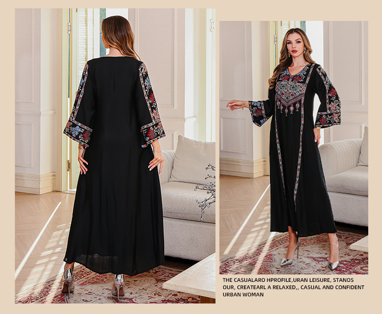 عبر الحدود اللباس الأنيق مسلم الشرق الأوسط اللباس دبي المرأة العباية التطريز ملصقات الماس رداء بقعة