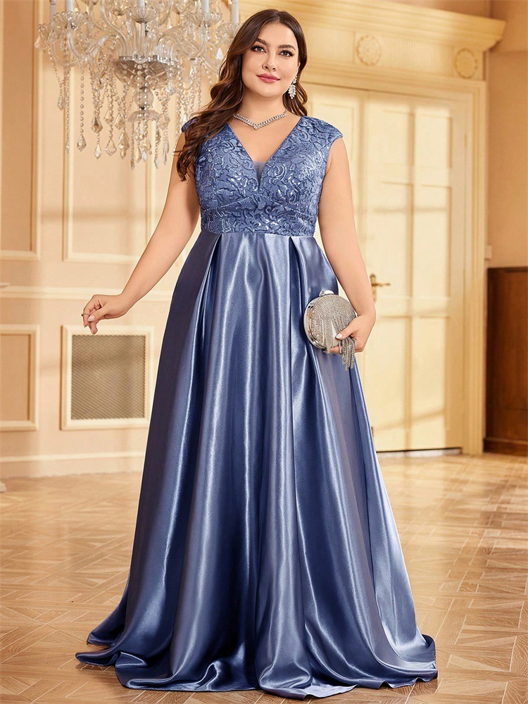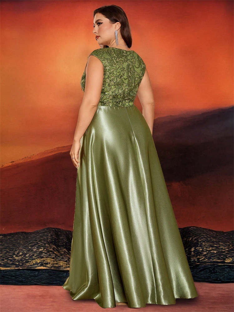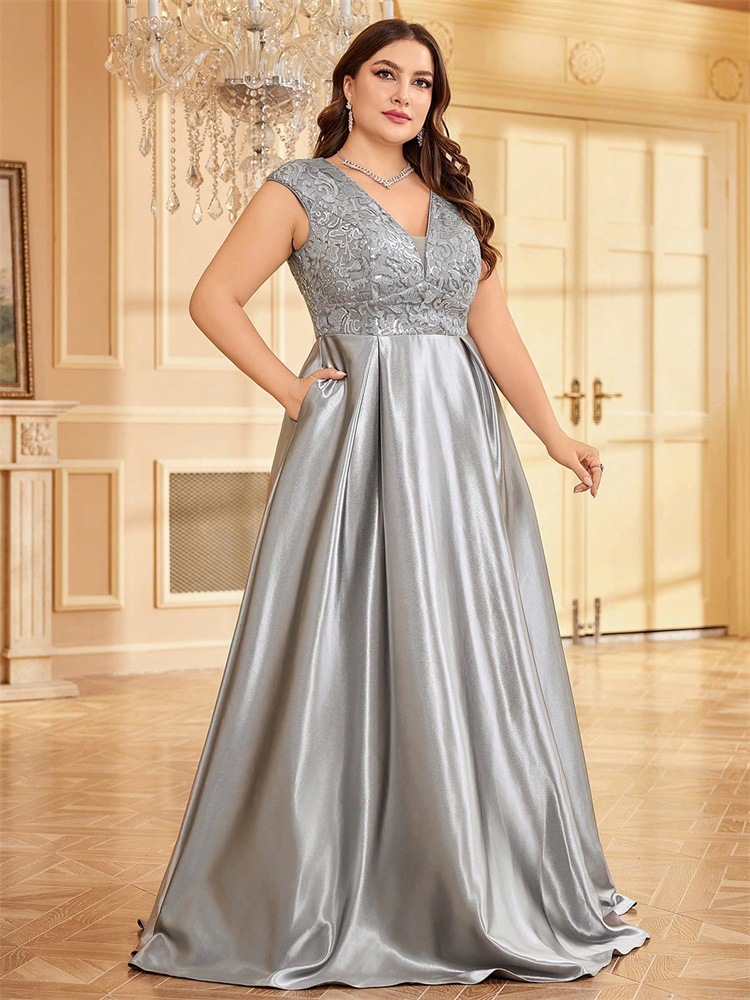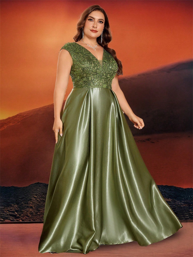 جديد حجم كبير من الدهون حماة اللباس أوروبا والولايات المتحدة عبر الحدود حار بيع طويلة الأكمام الخامس الرقبة ذيل السمكة الطرف فساتين السهرة