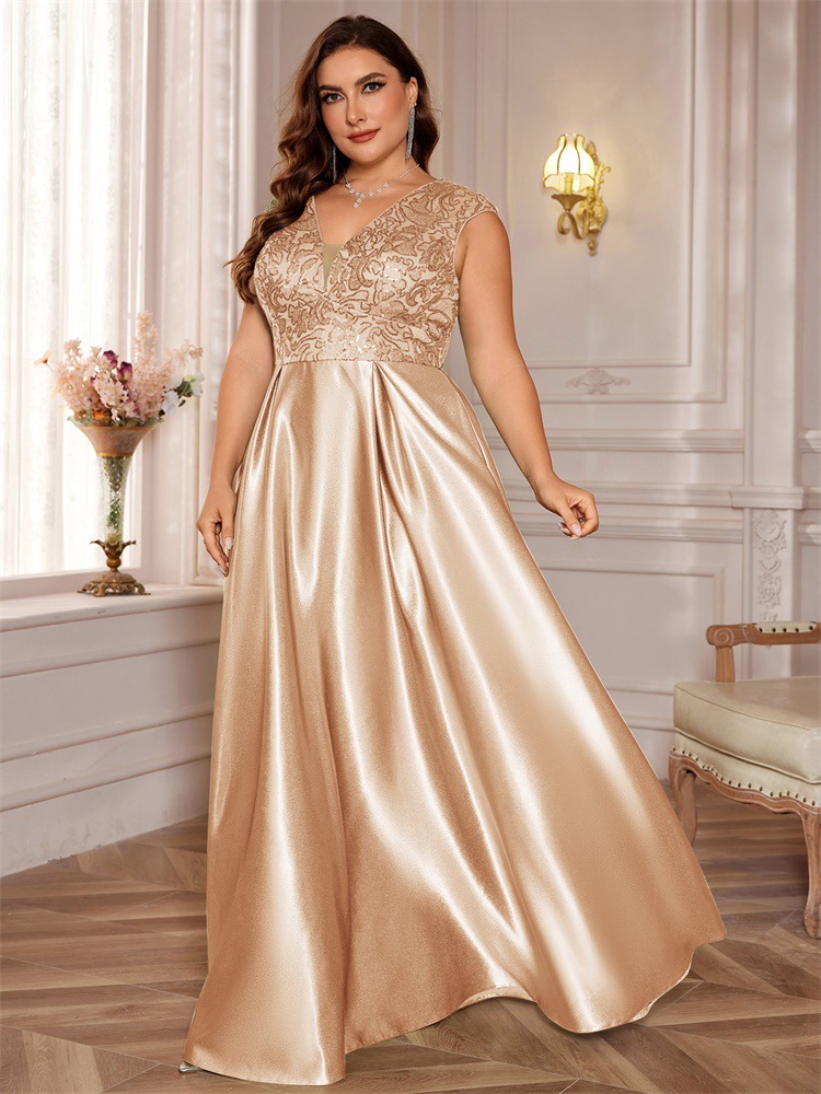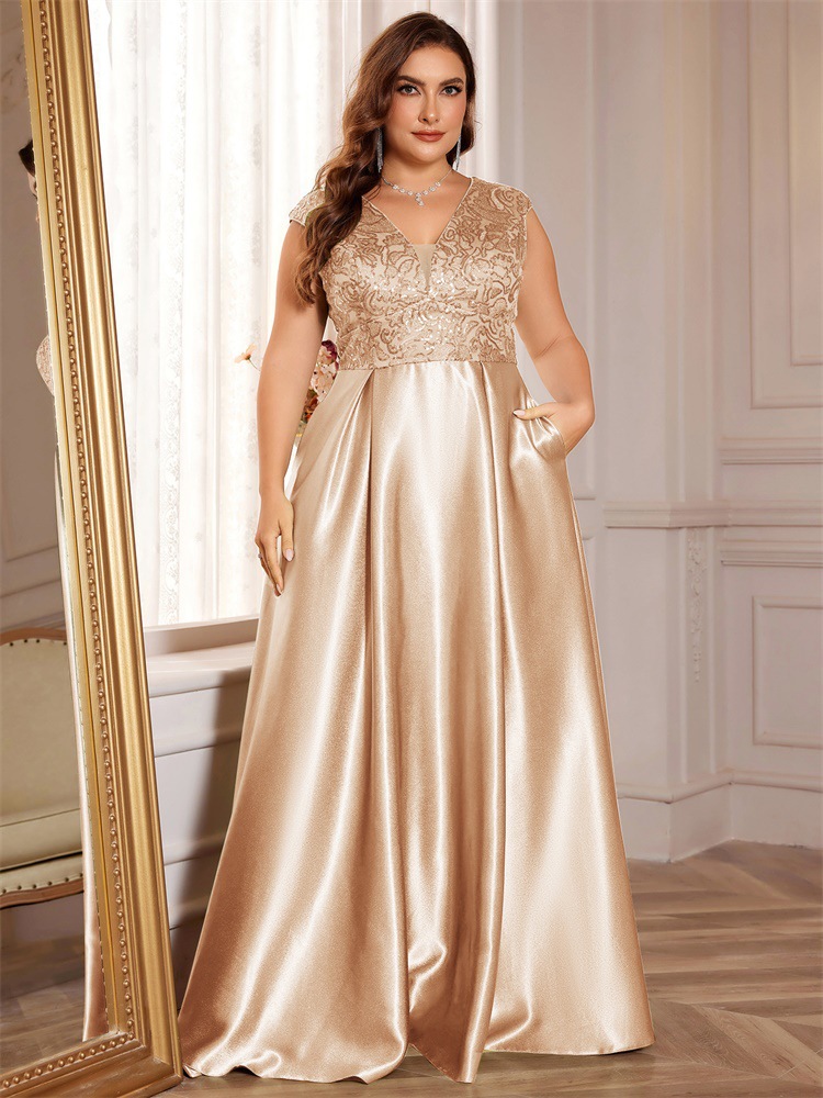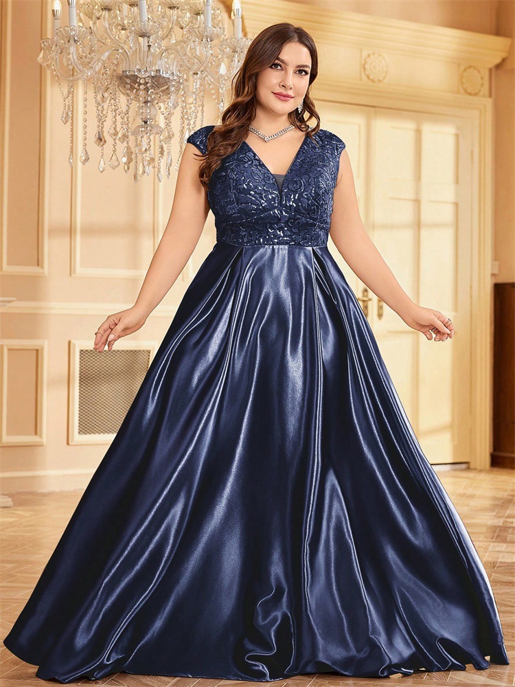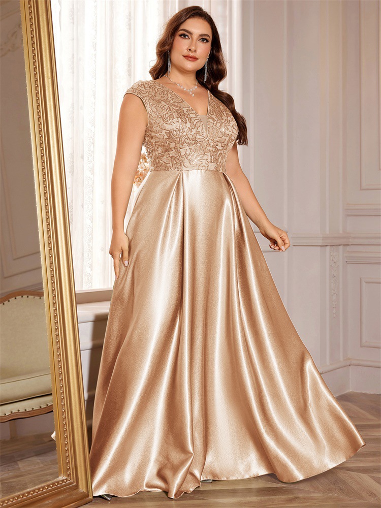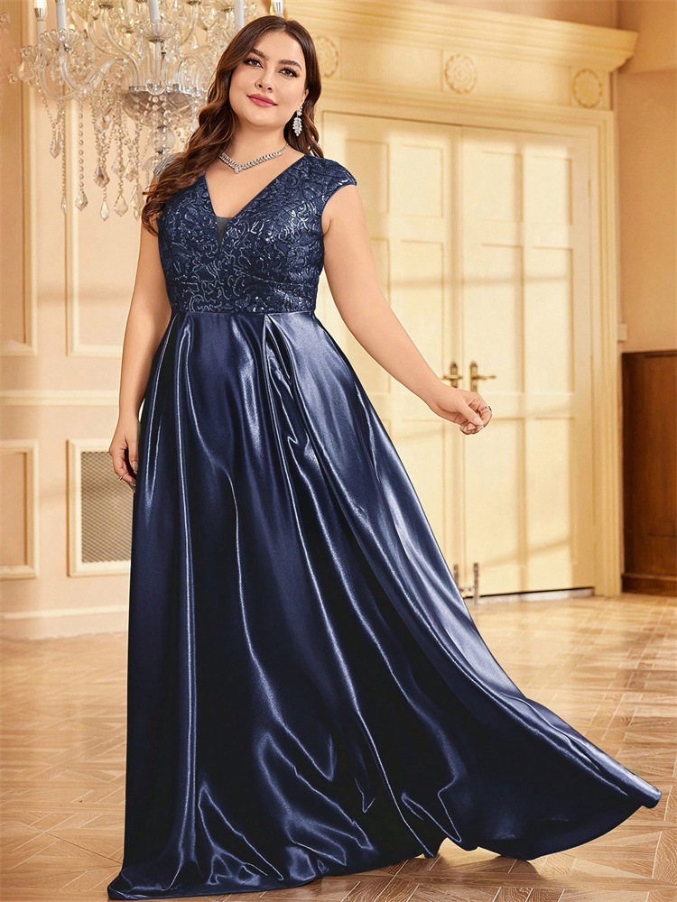 جديد حجم كبير من الدهون حماة اللباس أوروبا والولايات المتحدة عبر الحدود حار بيع طويلة الأكمام الخامس الرقبة ذيل السمكة الطرف فساتين السهرة