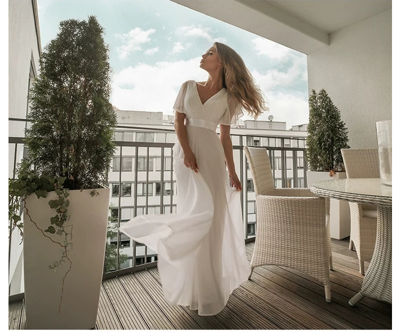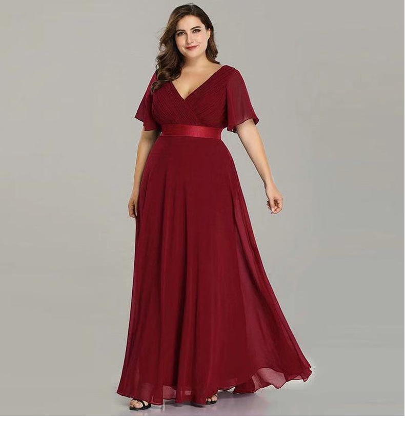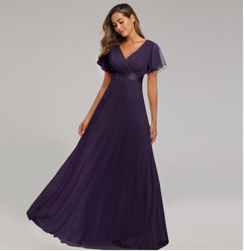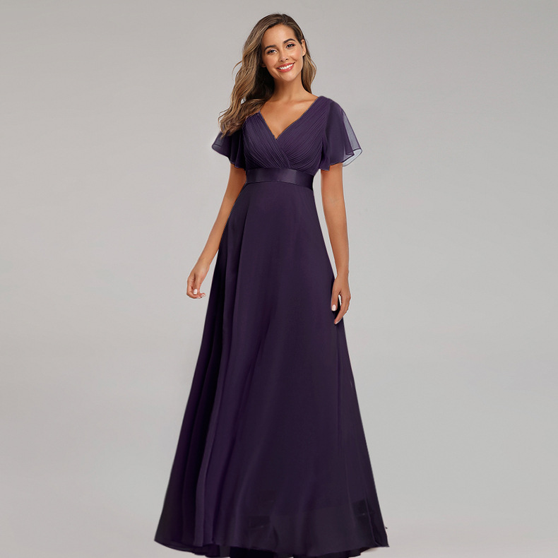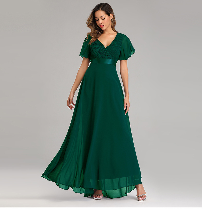 فستان سهرة ربيعي وصيفي مطوي يدويًا بياقة مزدوجة على شكل حرف V