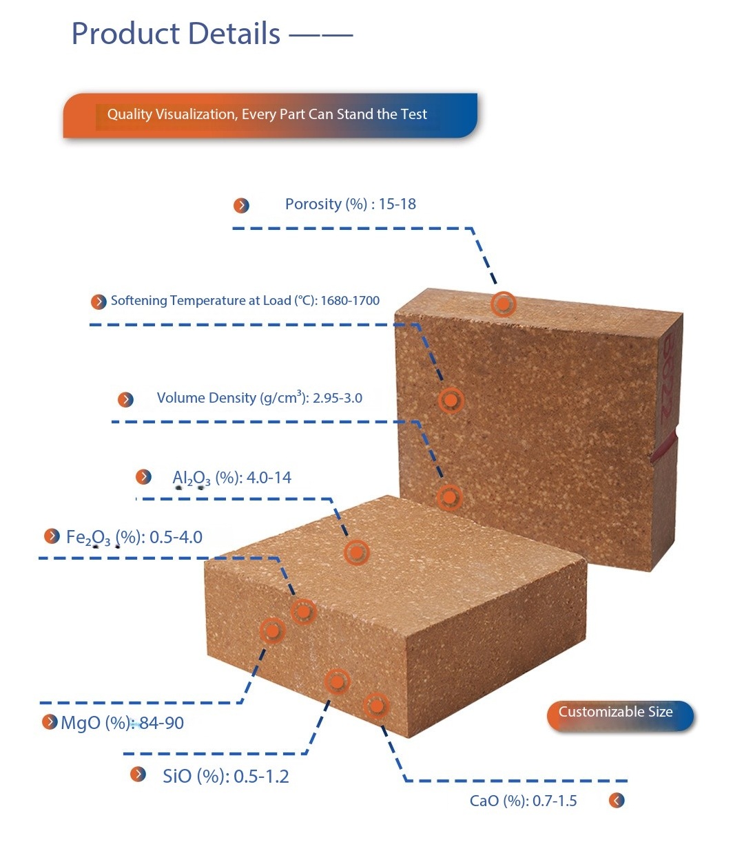 الطوب الحراري المصنوع من سبينيل الألومنيوم والمغنيسيا لأفران الجير المعدنية الكبيرة