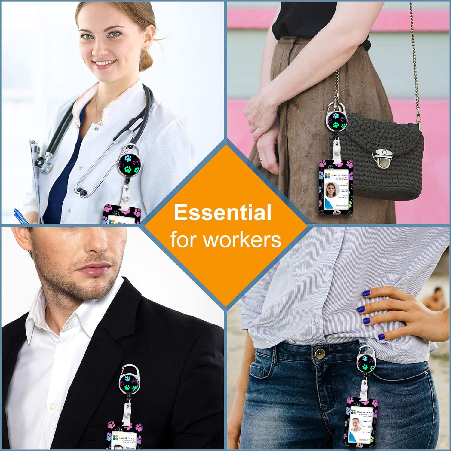كم بطاقة + من السهل سحب مشبك + حبل قابل للتعديل