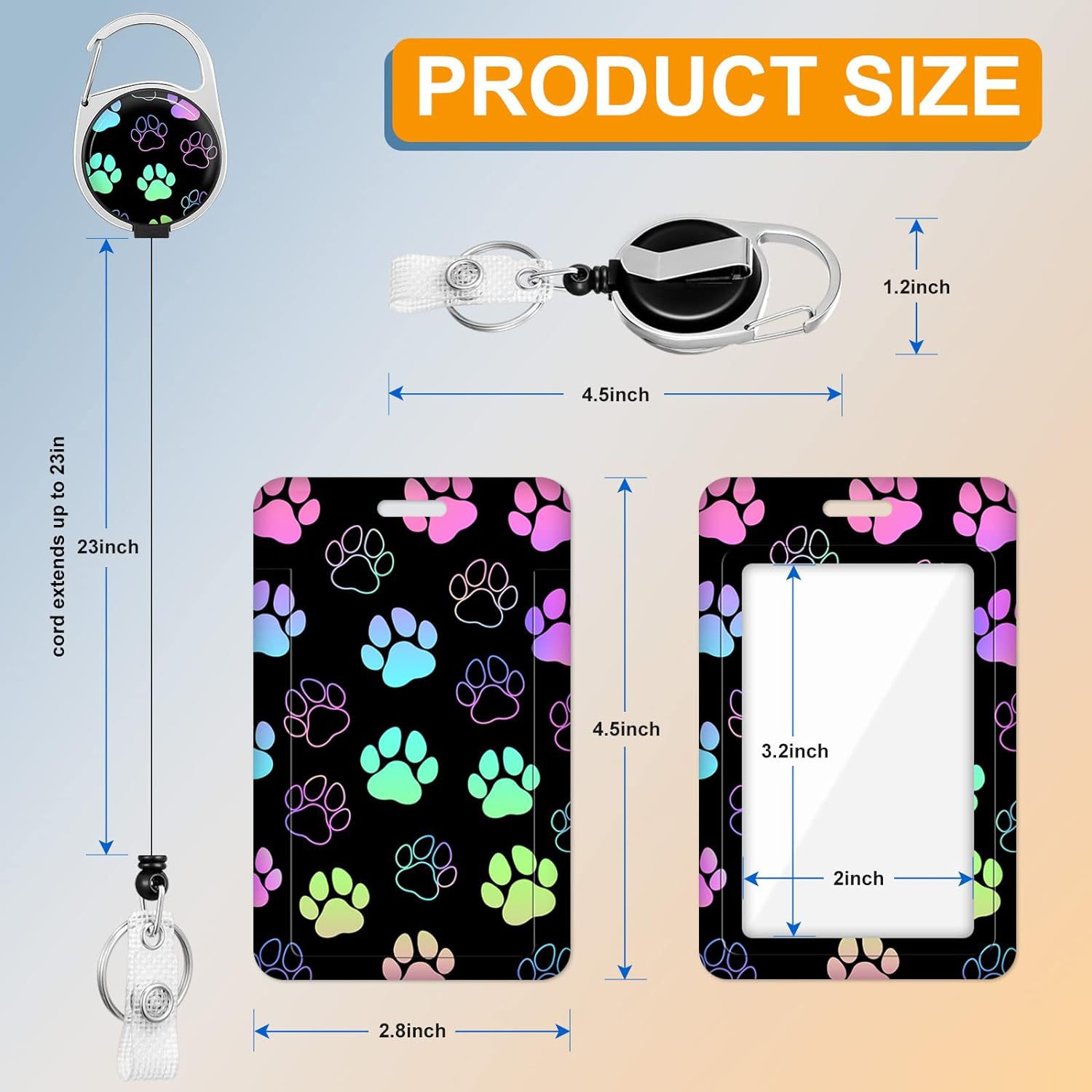 غطاء بطاقة نقل الحرارة ببصمة القدم مع مشبك قابل للتوسيع وسهل السحب، وحبل تعليق، ومشبك هوية، وبطاقة صدر معلقة مع سلسلة مفاتيح