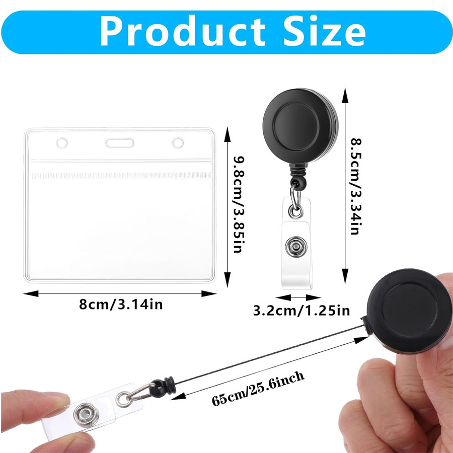 جراب بطاقة هوية مقاوم للماء من مادة البولي فينيل كلوريد، حبل تعليق للهوية، مشبك سهل السحب، مشبك شارة صدر قابل للتمدد وسهل السحب