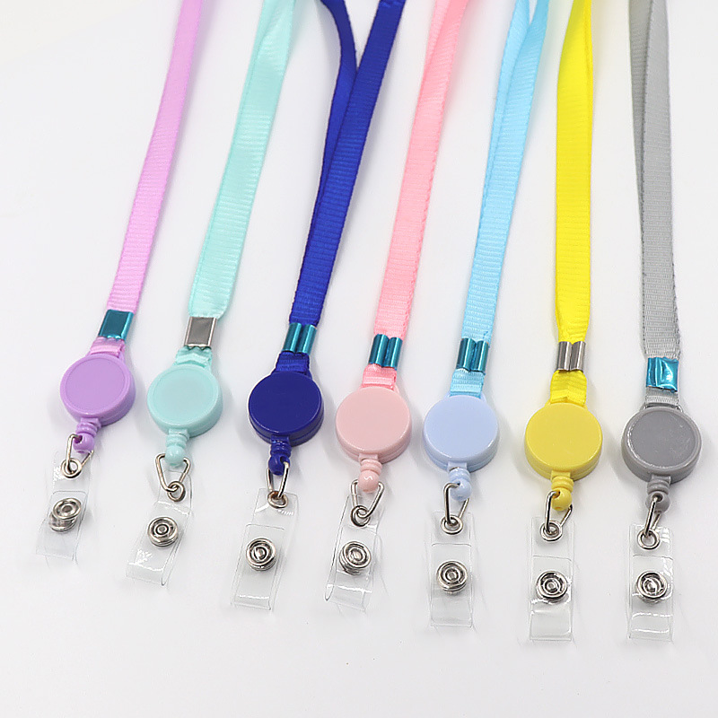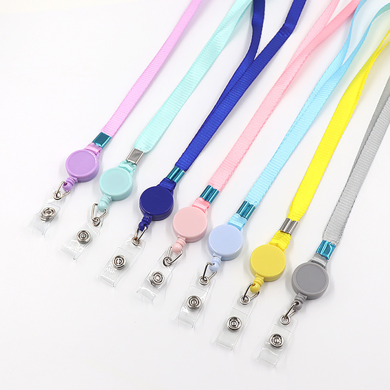 حبل تعليق طويل سهل السحب ومرن مصنوع من البوليستر بلون سادة، حامل بطاقة العمل، حامل بطاقة الحرم الجامعي، حامل الشهادة