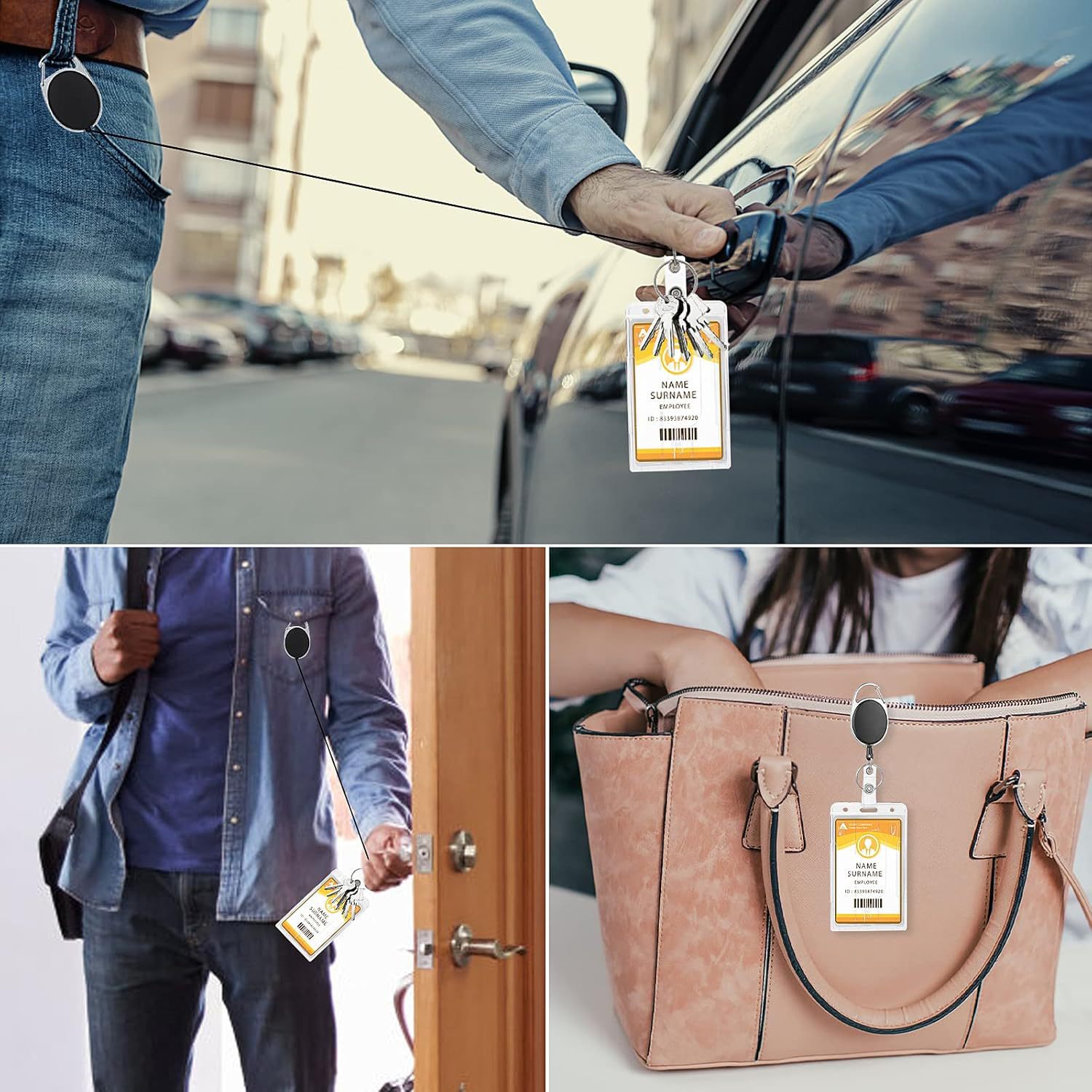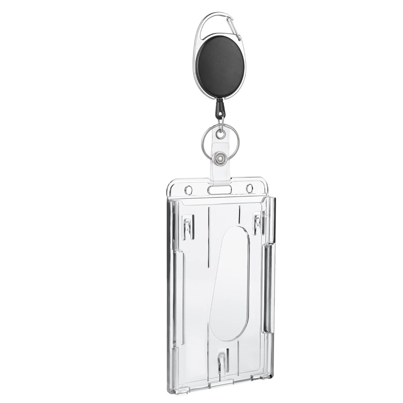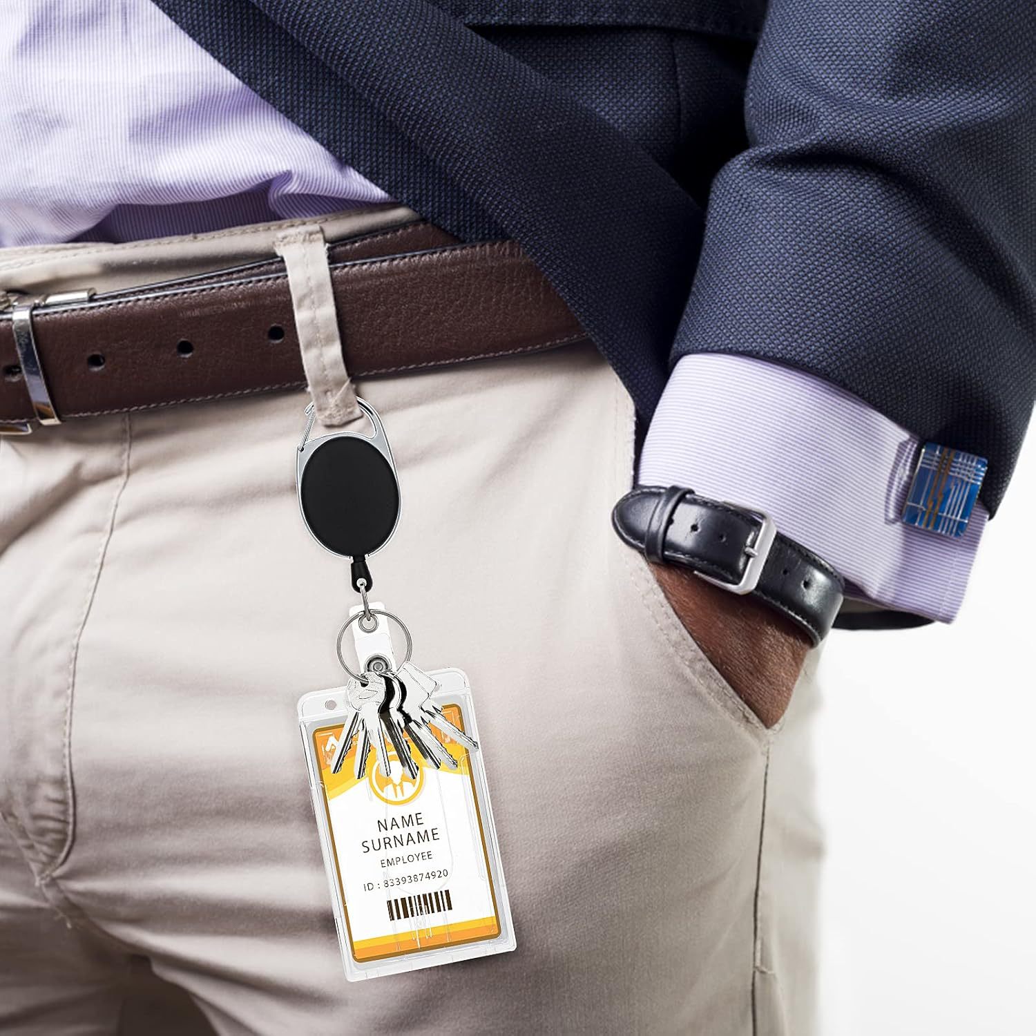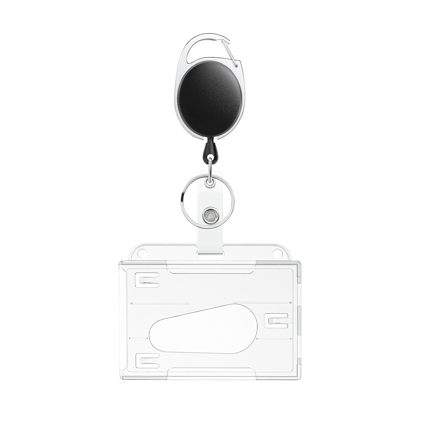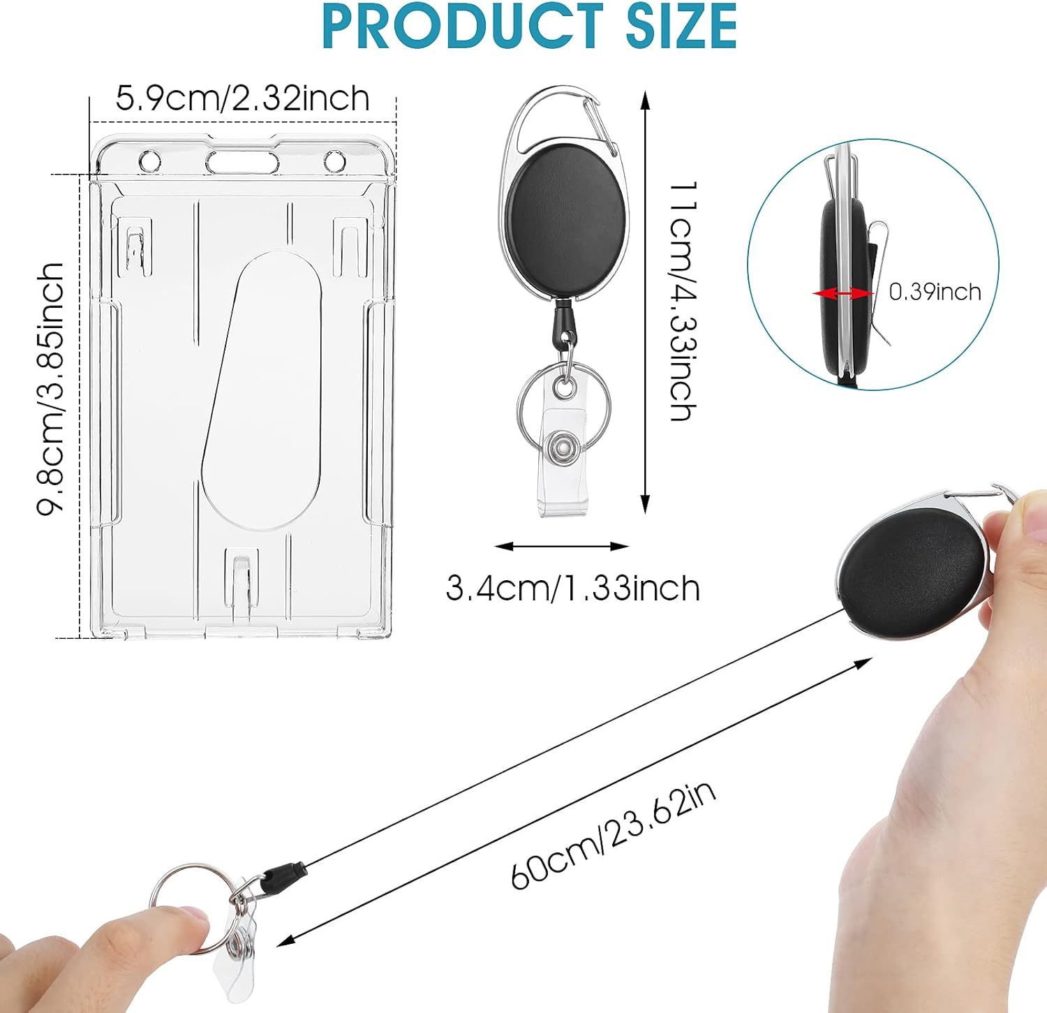 سلسلة مفاتيح متينة قابلة للسحب مزودة بزر سحب سهل وفتحتين للبطاقات وحافظة لبطاقة الهوية وحافظة صلبة للبطاقات