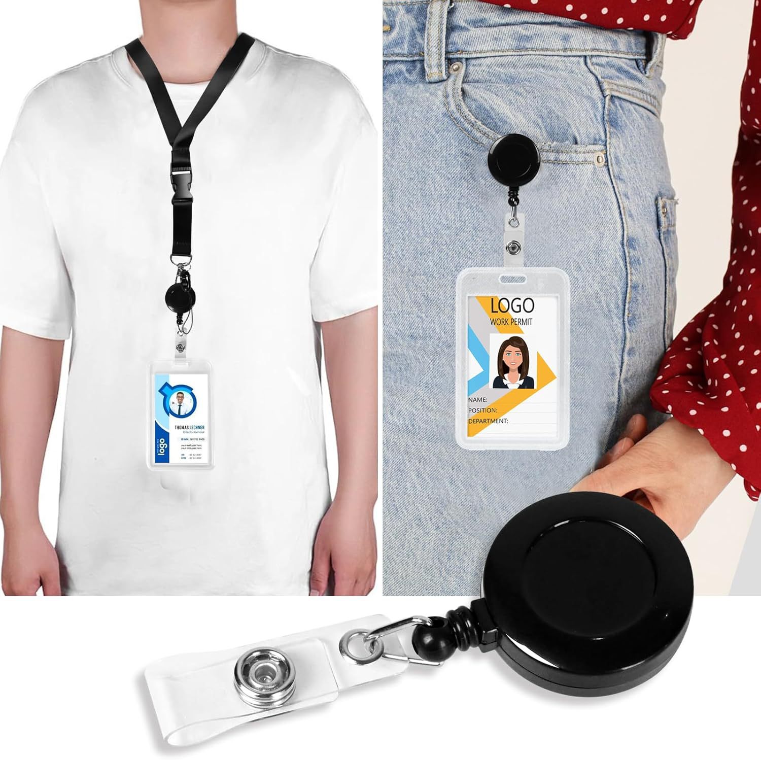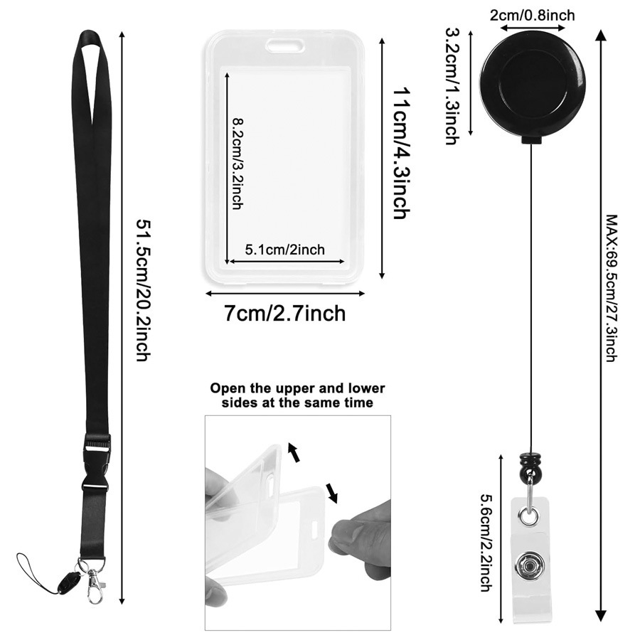 حار بيع عبر الحدود على الوجهين بطاقة شفافة تغطي الحبل الأسود بالإضافة إلى سحب مشبك قابل للسحب من السهل سحب الصدر بطاقة مشبك