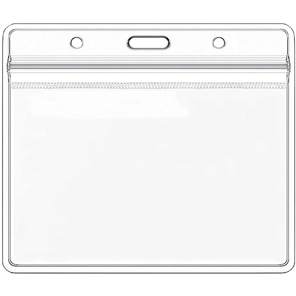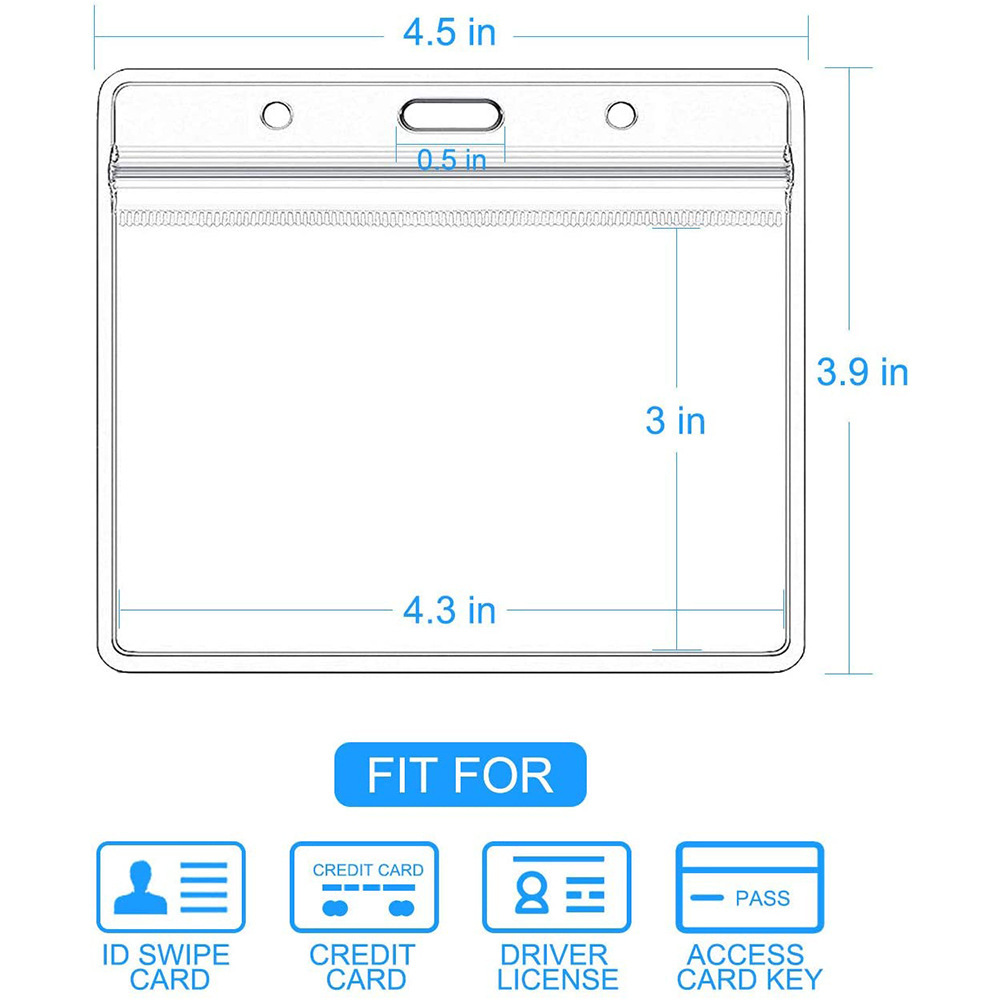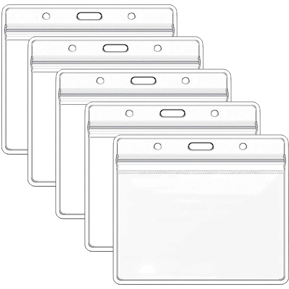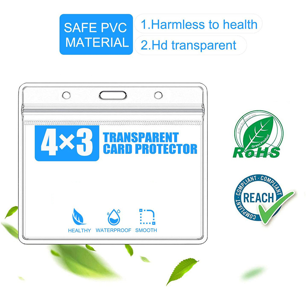 جراب بطاقة هوية شفاف مقاوم للماء بمشبك مزدوج الفتحات 4 × 3 بوصات جراب بطاقة عمل من مادة البولي فينيل كلوريد جراب بطاقة عمل ماركة