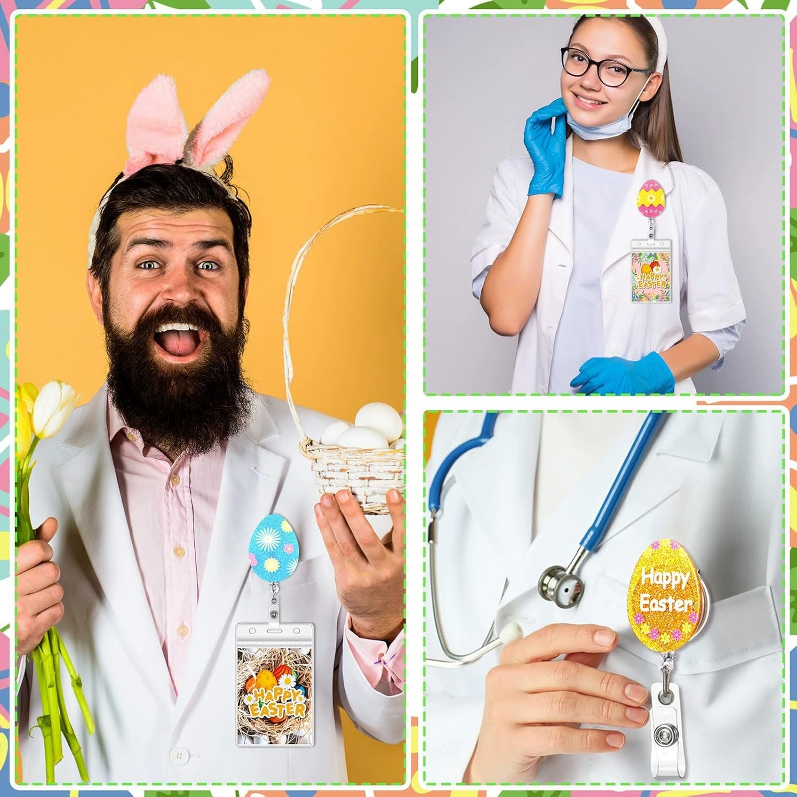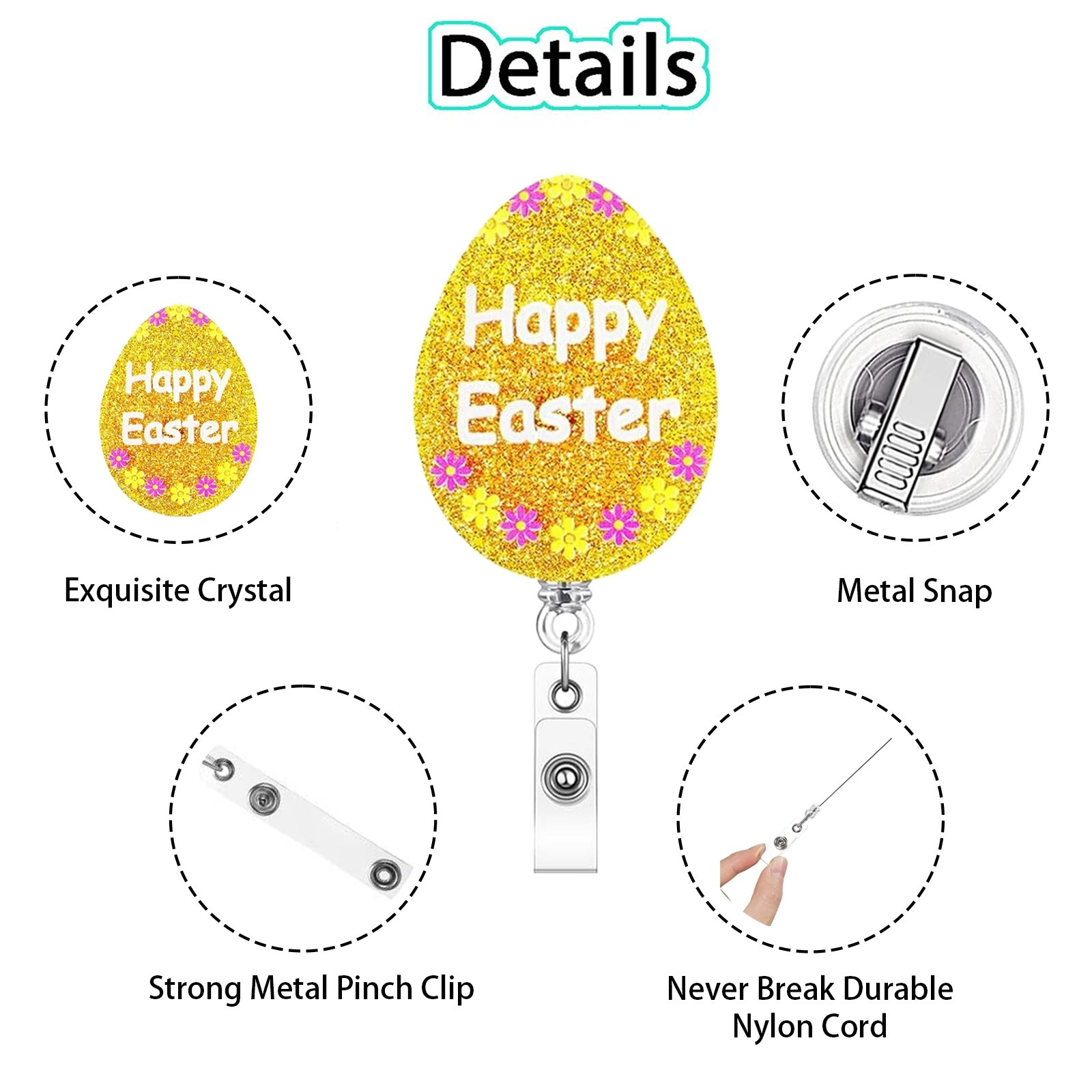 بيضة عيد الفصح الاكريليك مشبك سهل سحب شارة عطلة بكرة قابل للسحب بكرة التمساح مشبك