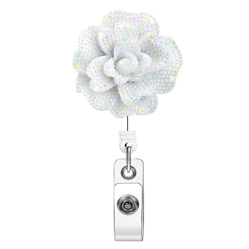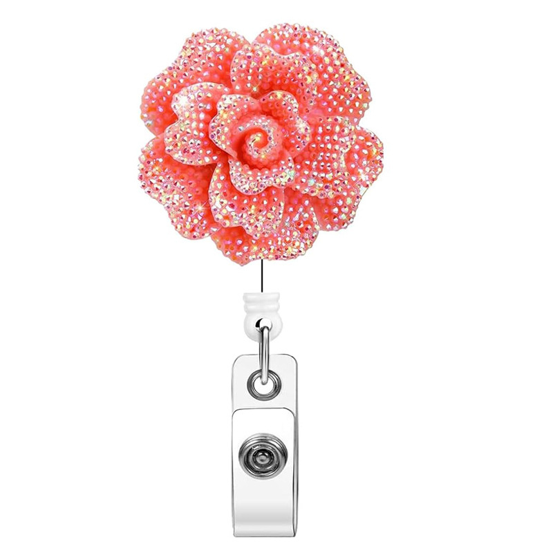 مشبك سهل السحب على شكل وردة من الراتنج، مشبك قابل للسحب بزاوية 360 درجة، سلسلة مفاتيح حبلية معلقة على شكل زهرة
