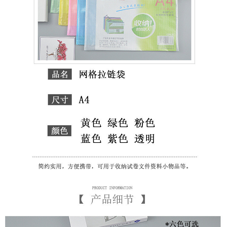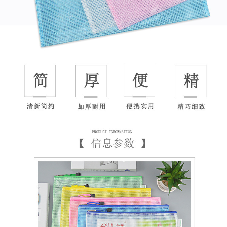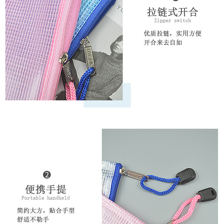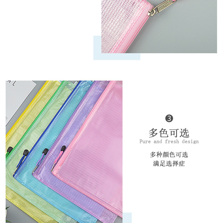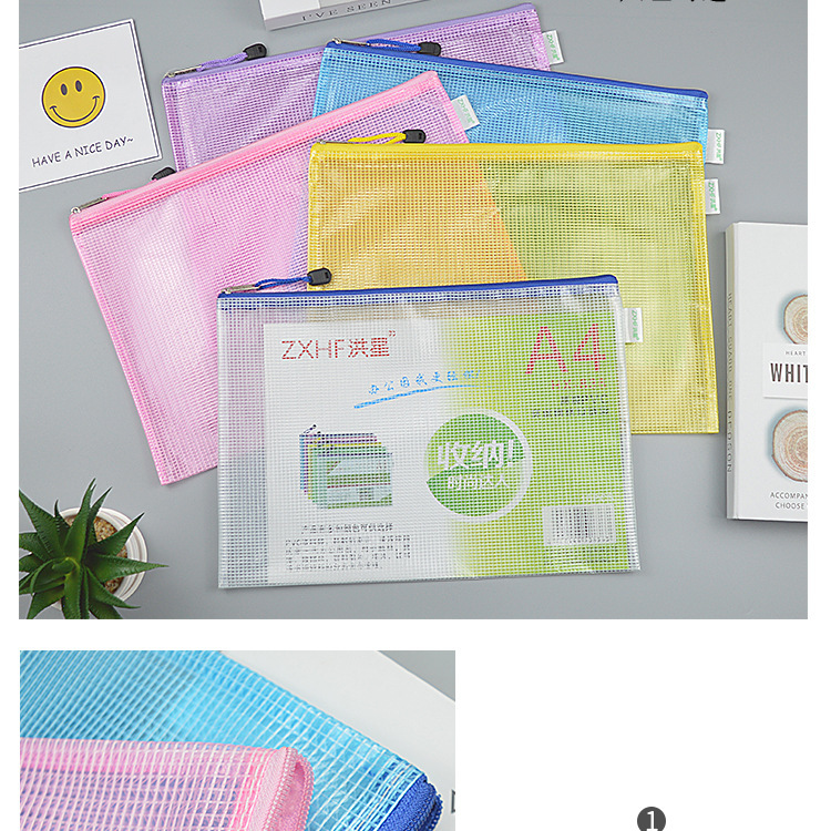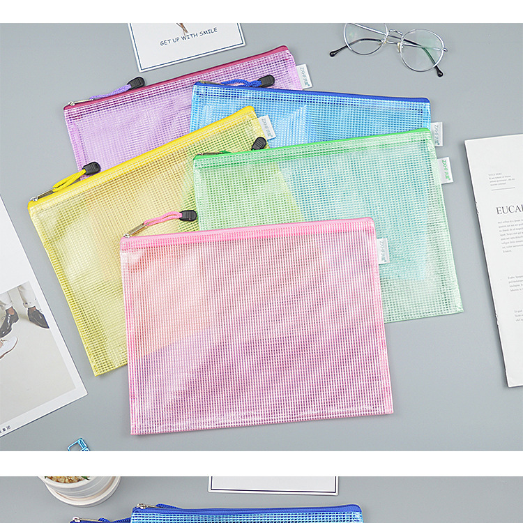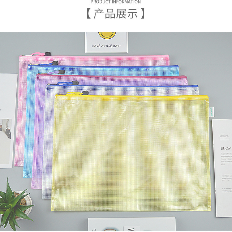 شبكة كيس سستة A4 ملف حقيبة شفافة سميكة A4 سستة حقيبة ملف ورقة معلومات ورقة كيس مكتب كيس