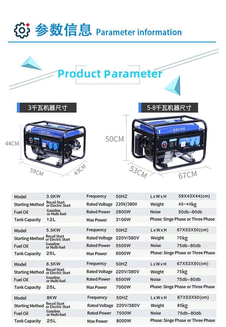 110 فولت/220 فولت/380 فولت مولد البنزين في الهواء الطلق منزل صغير محمول دليل كهربائي 2/3/5-10KW