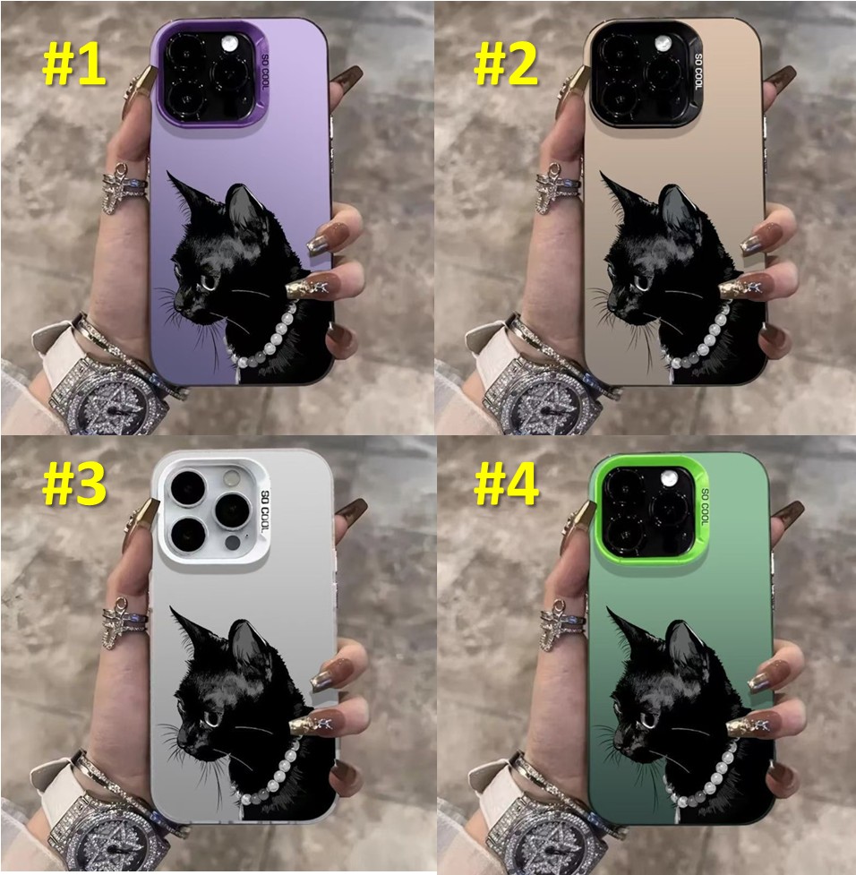 جراب قلادة القطة السوداء لهواتف ايفون Apple 16Pro وiPhone 15 Pro Premium و14 Pro 13 Pro