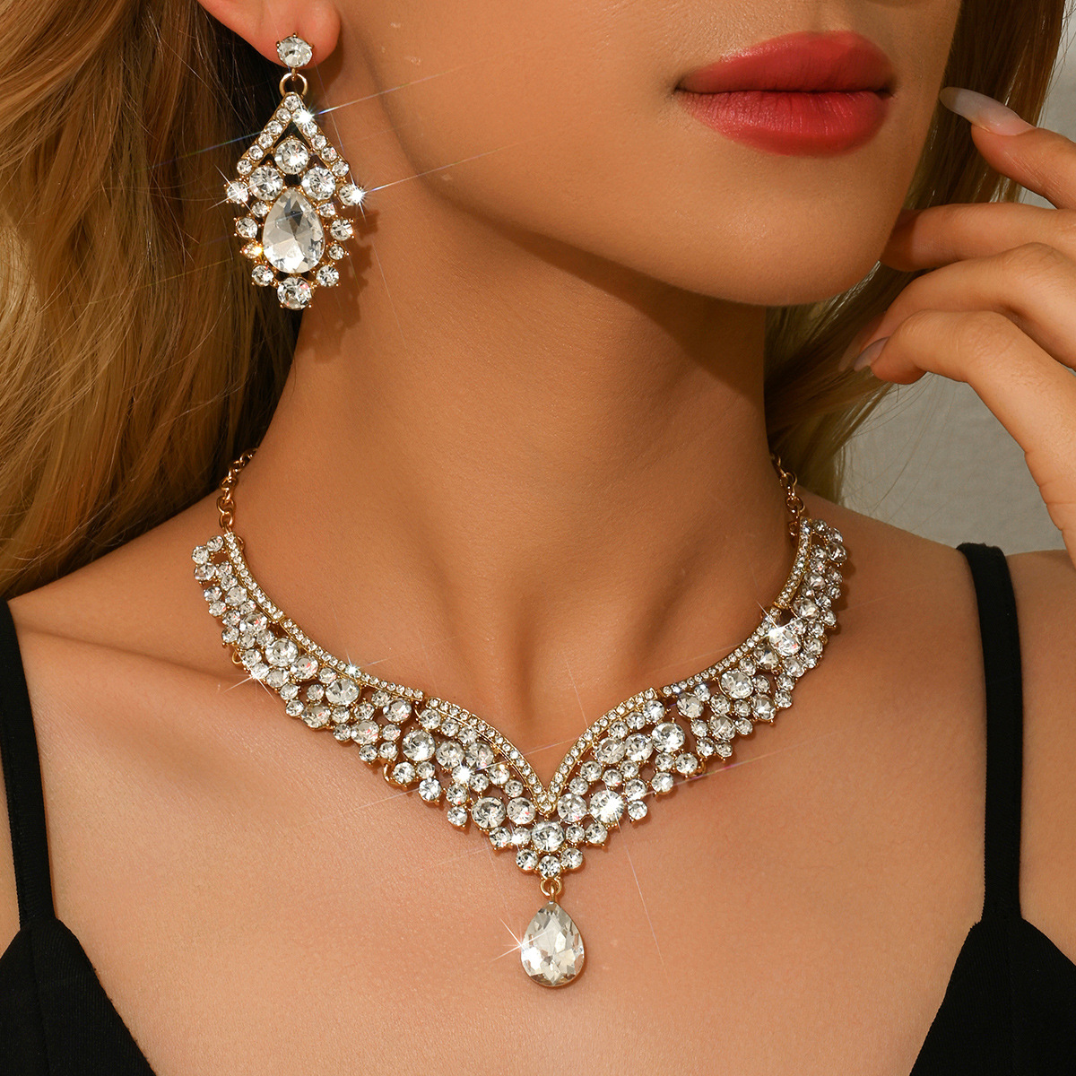 عبر الحدود اللباس والمجوهرات قلادة أقراط أوروبا والولايات المتحدة اثنين من قطعة من الزهور الزفاف خمر تصميم رفيع المستوى بمعنى مجموعة
