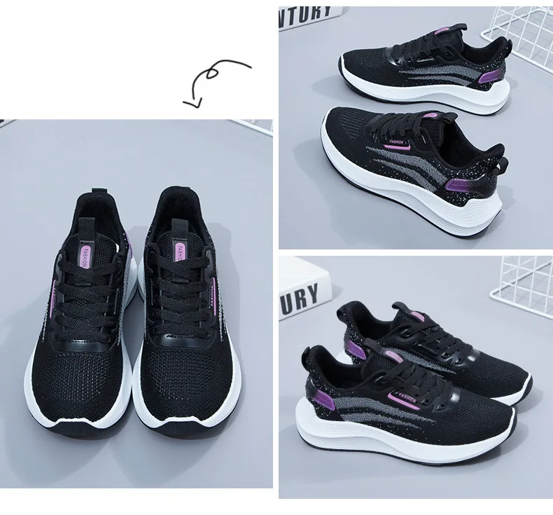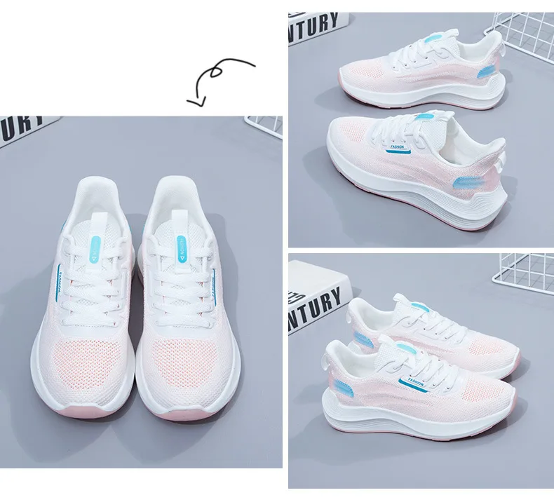 أحذية نسائية 2024 عبر الحدود الجديدة تحلق المنسوجة الاحذية الرياضية الاحذية تشغيل واحد أزياء الكورية أزياء السيدات أحذية عادية