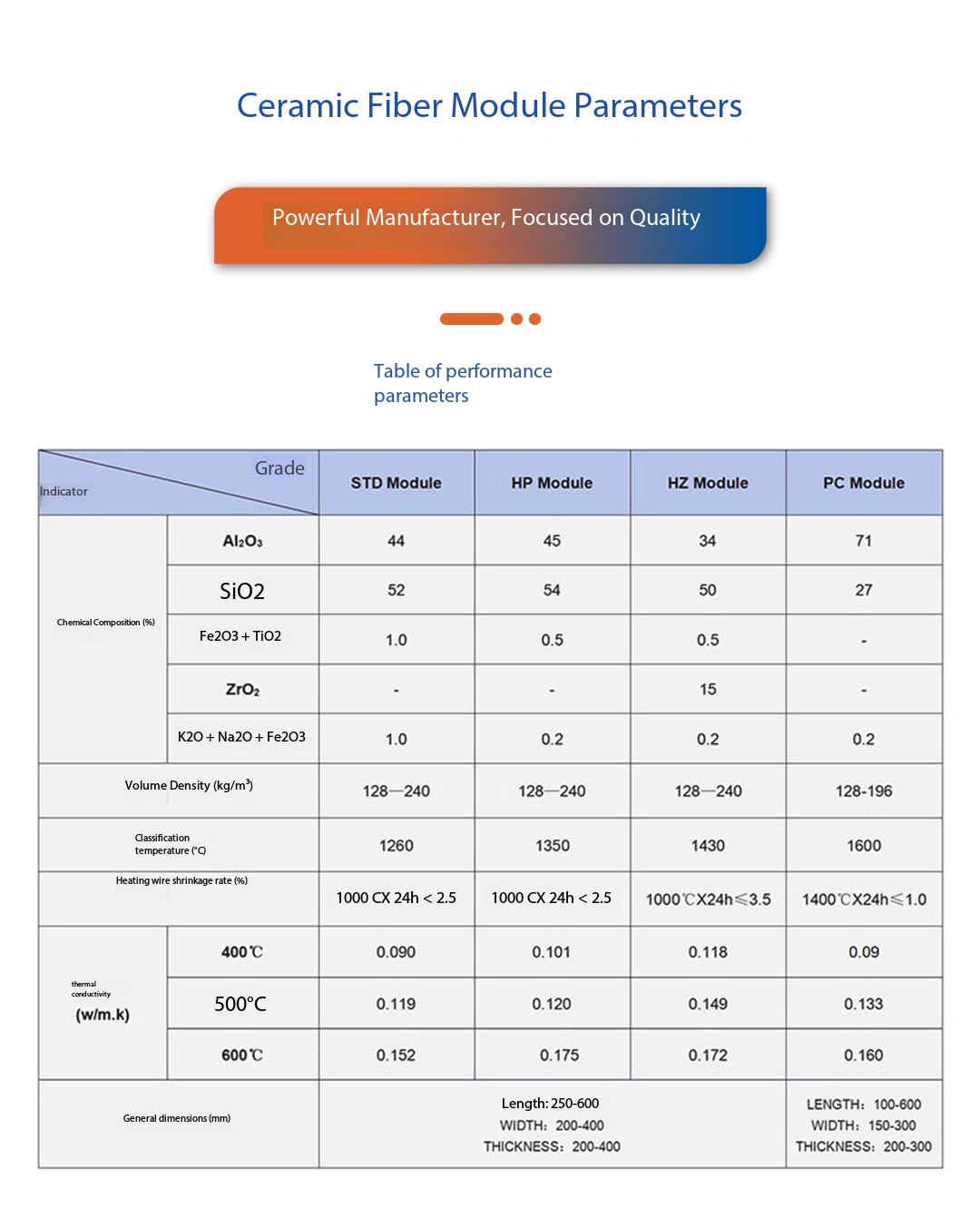 وحدة ألياف السيراميك، مقاومة درجات الحرارة العالية،