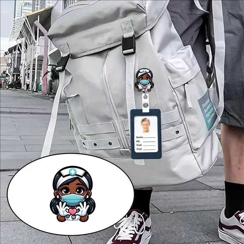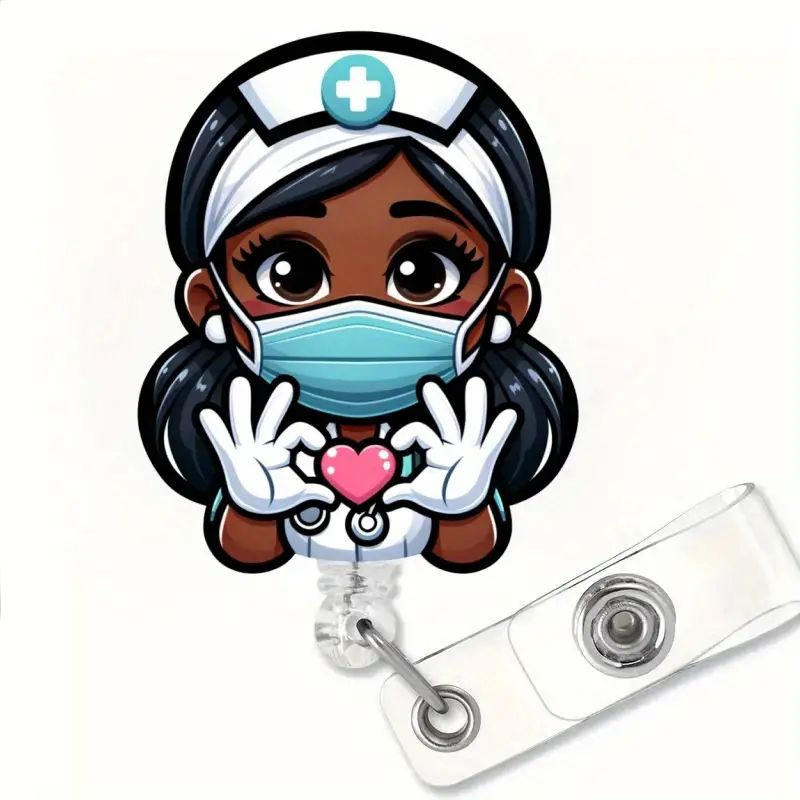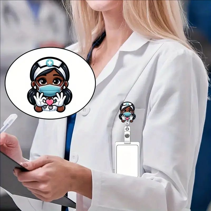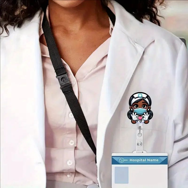 عبر الحدود أكريليك أسود جلد ممرضة قابل للسحب شارة الدوارة بكرة الرعاية الصحية مفتاح سلسلة شهادة سحب مشبك
