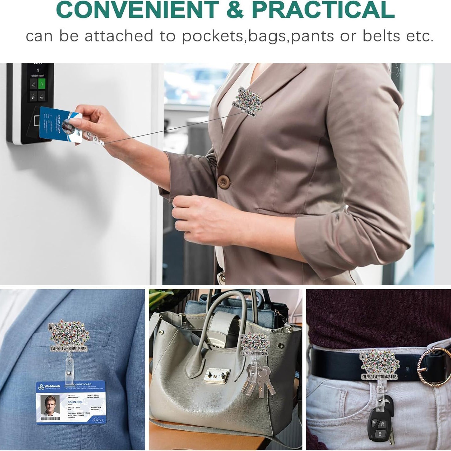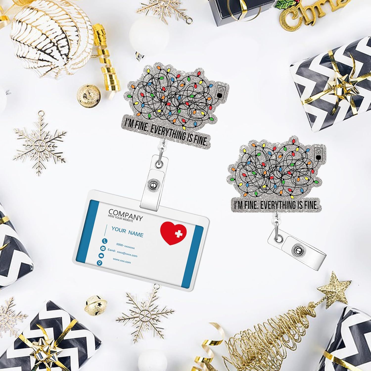 أنا بخير( I'm fine ) شارة دوارة قابلة للسحب للعطلات مع مشبك تعريف الطبيب والممرضة سهل السحب