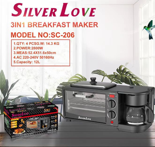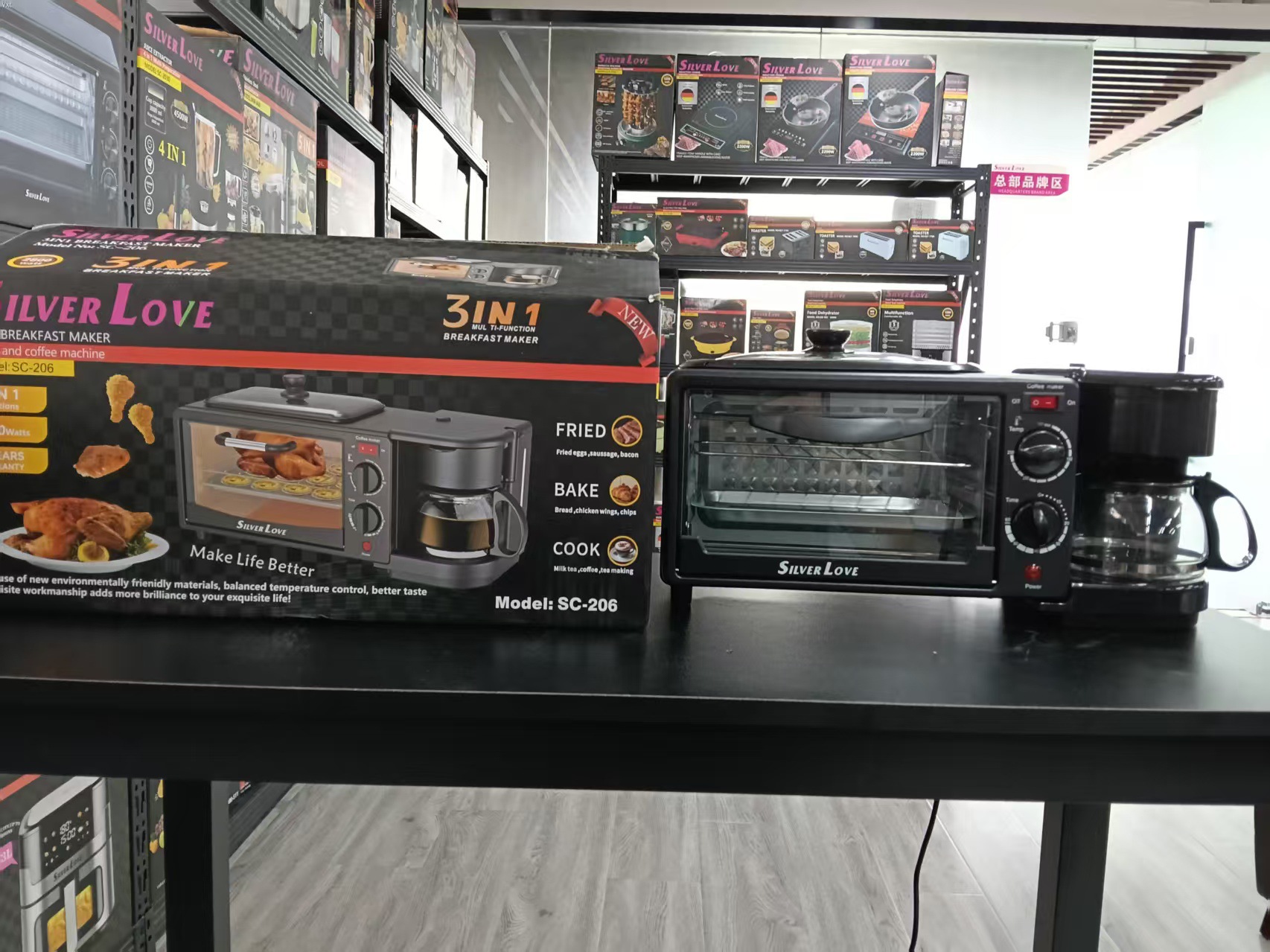 متعددة الوظائف المنزلية ثلاثة في واحد إفطار آلة القلي المحمص المحمص المحمص المحمص آلة القهوة مصغرة فرن آلة الإفطار