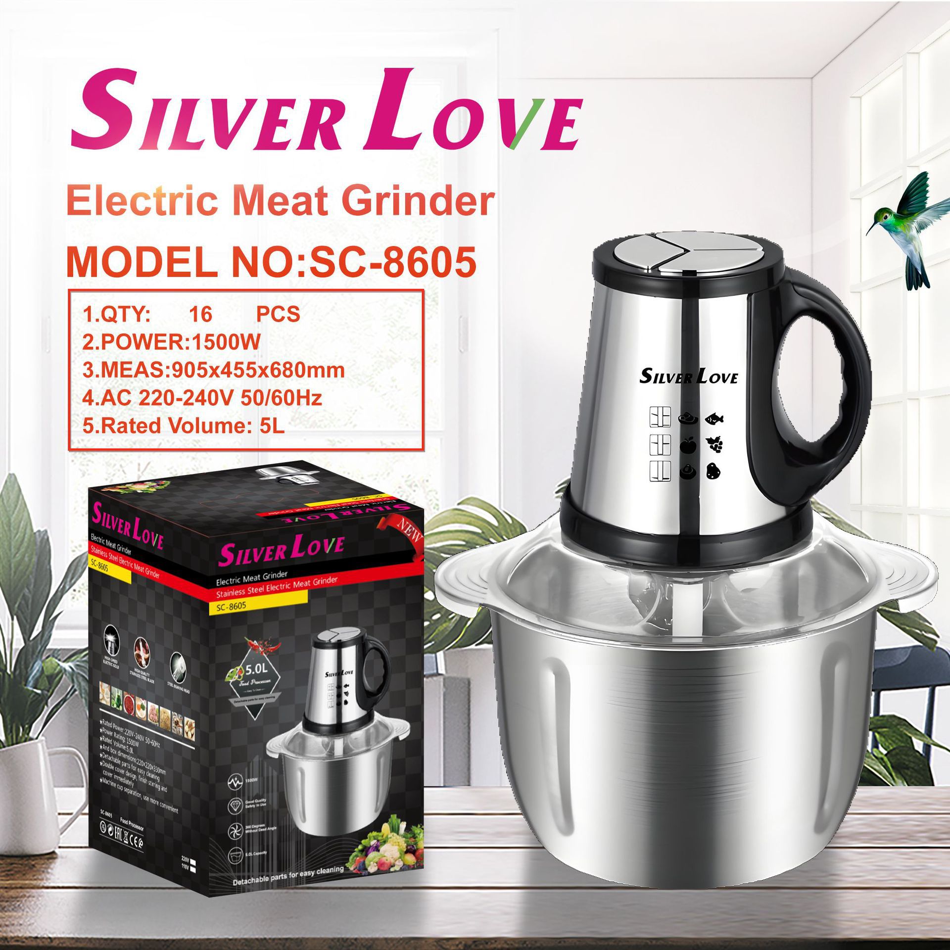 تصدير الفولاذ المقاوم للصدأ المفرمة اللحوم المنزلية 5.0L متعددة الوظائف آلة الطبخ 1500W عالية الطاقة 5430 موتور