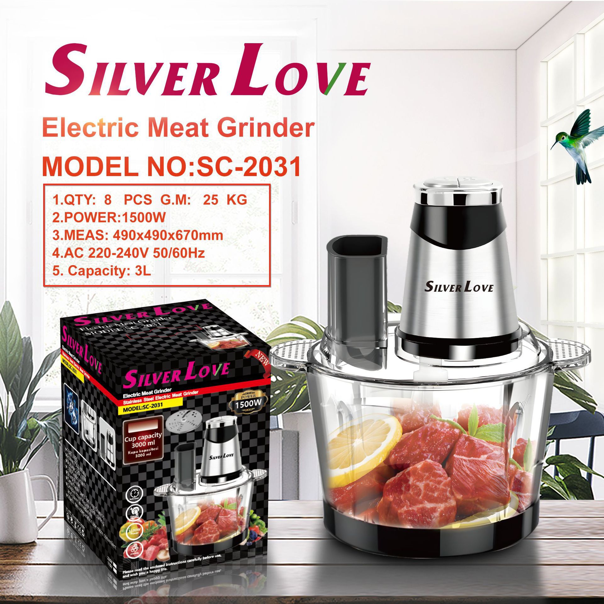 تصدير اللحوم الكهربائية المنزلية مفرمة الزجاج 3.0L قدرة كبيرة خلاط وعاء من الزجاج آلة الطبخ