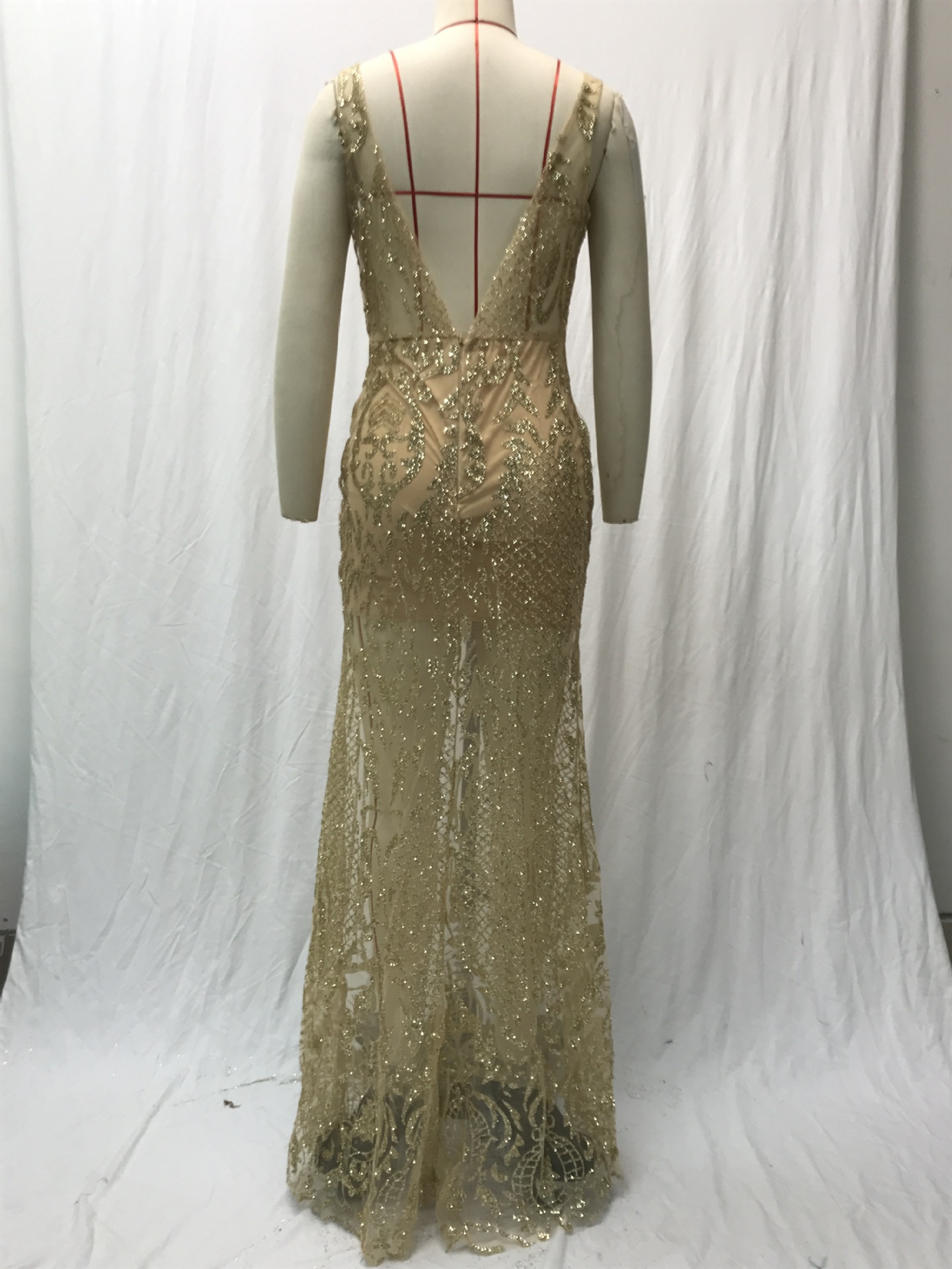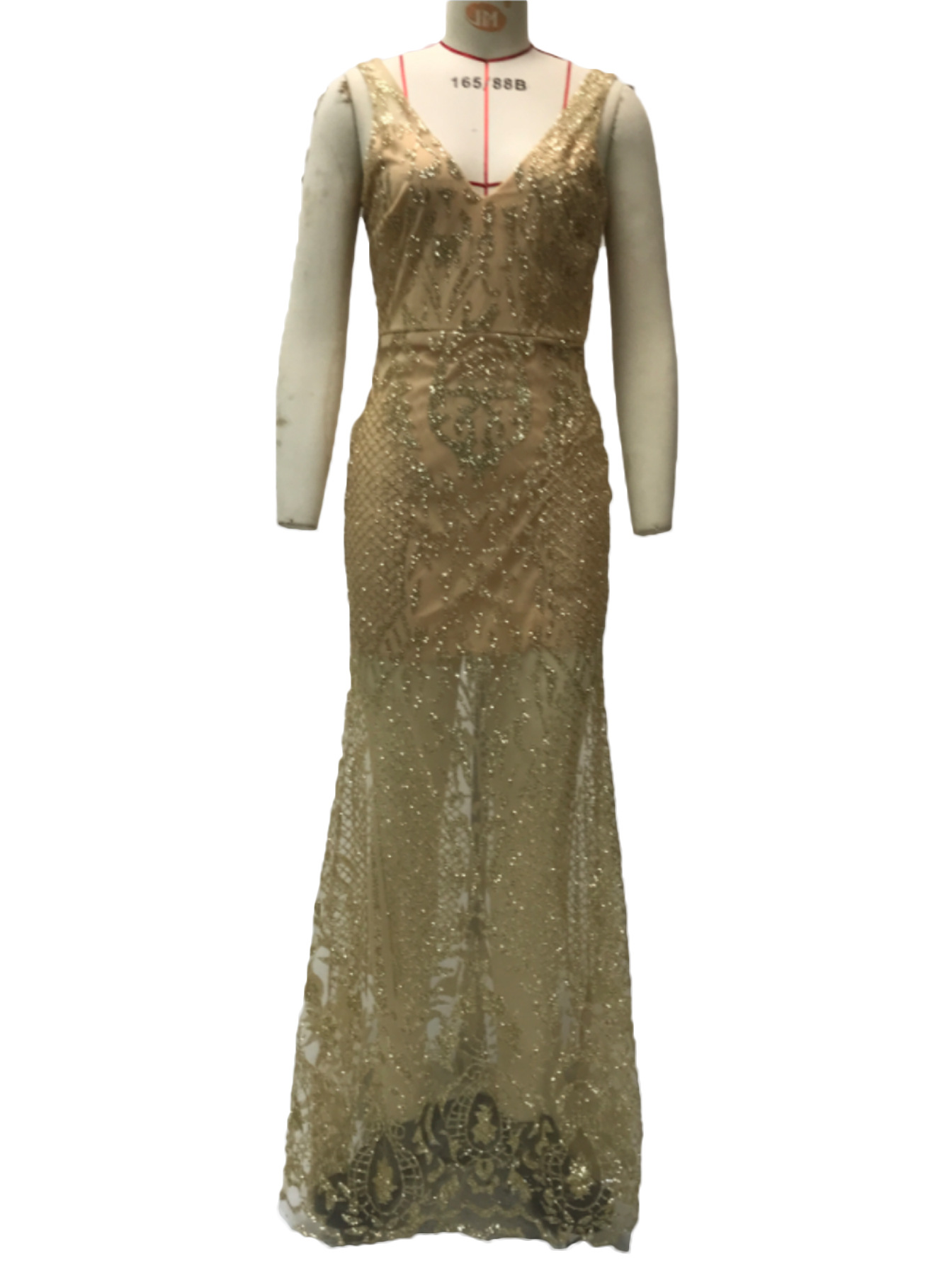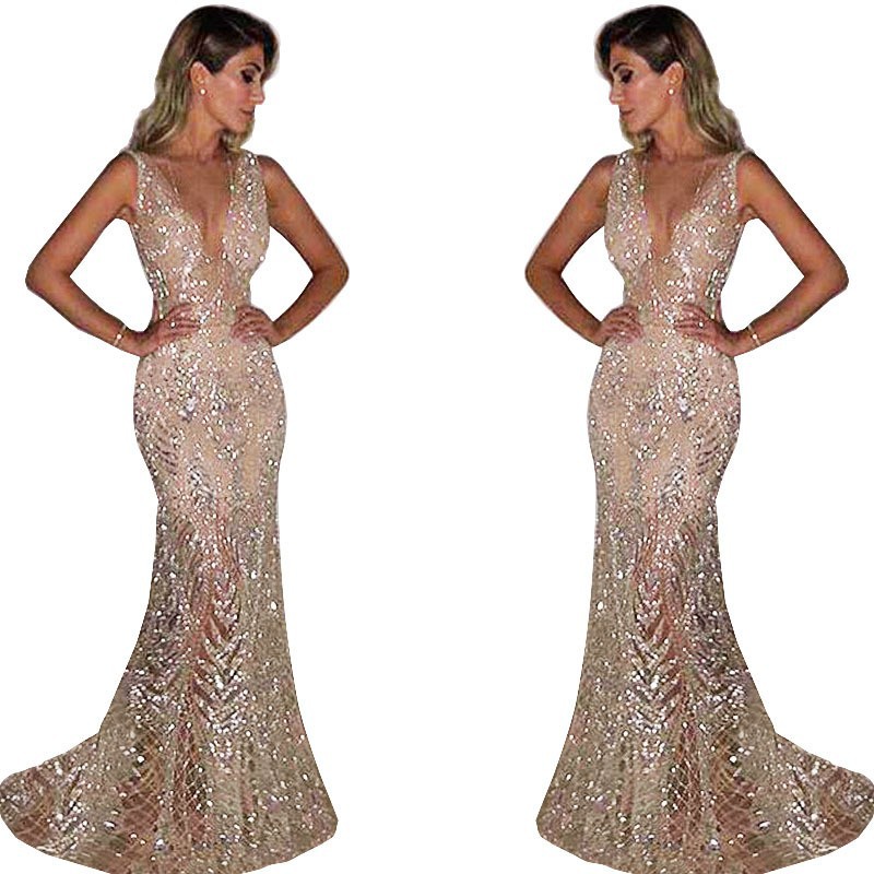 فستان سهرة طويل بدون أكمام بفتحة رقبة على شكل حرف V لمختلف المناسبات