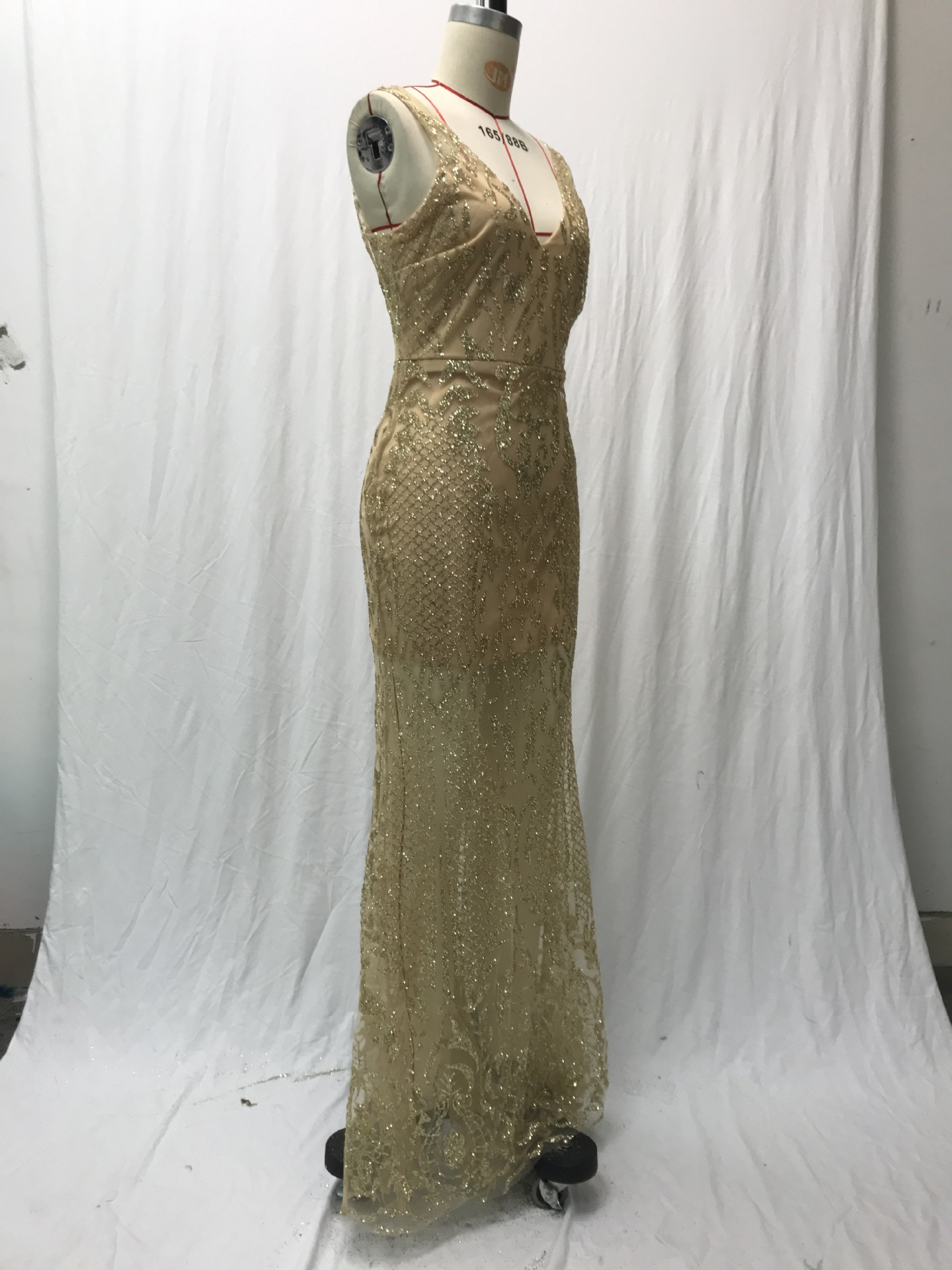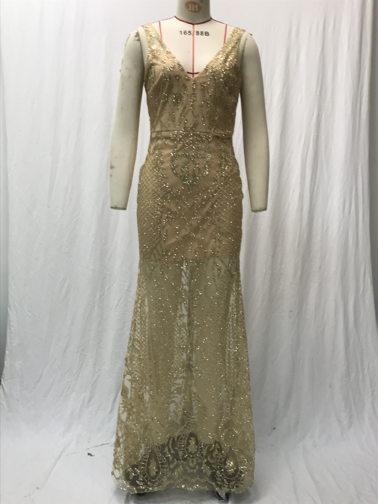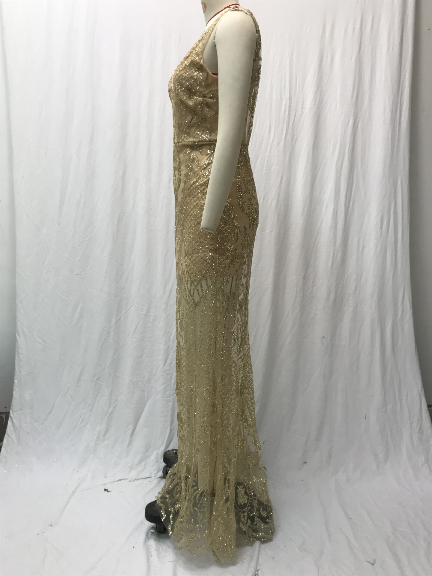 فستان سهرة طويل بدون أكمام بفتحة رقبة على شكل حرف V لمختلف المناسبات