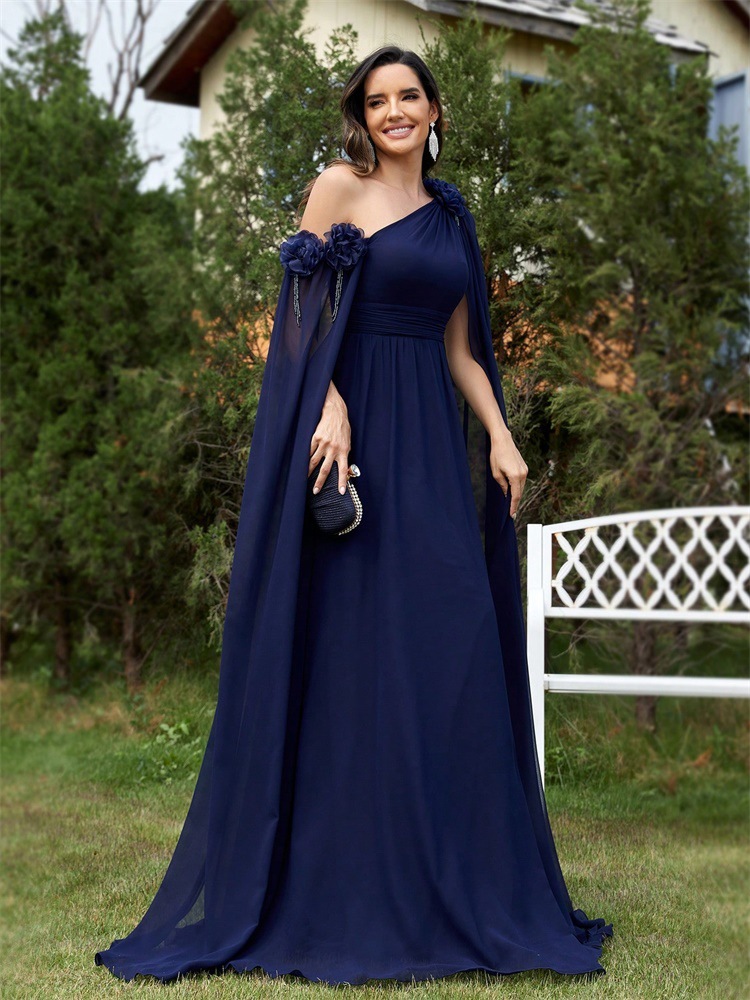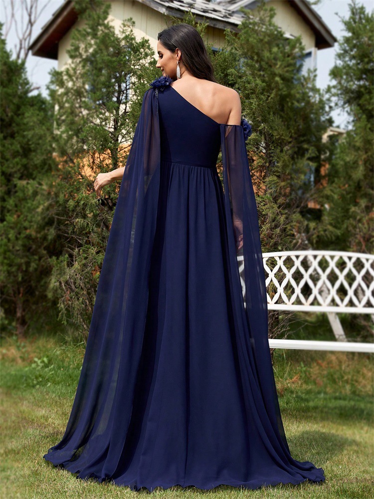 فستان شيفون طويل مزين بشرائط للنساء، مناسب للحفلات والمناسبات المسائية