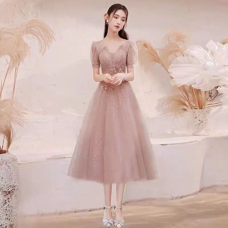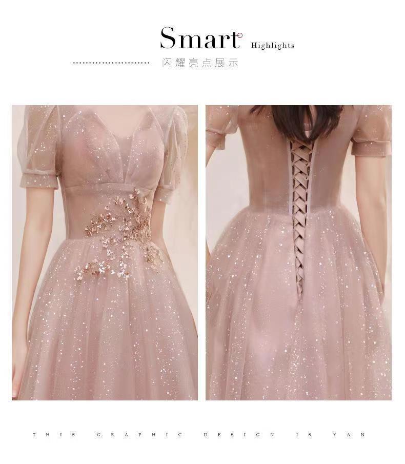 فساتين وصيفات الشرف من الساتان، بقصة A-Line / برنسيس، وفتحة رقبة على شكل V، وأكمام نصفية، وتطريزات، وحزام دانتيل، وظهر مكشوف، وطول يصل إلى الأرض / كشكشة طويلة