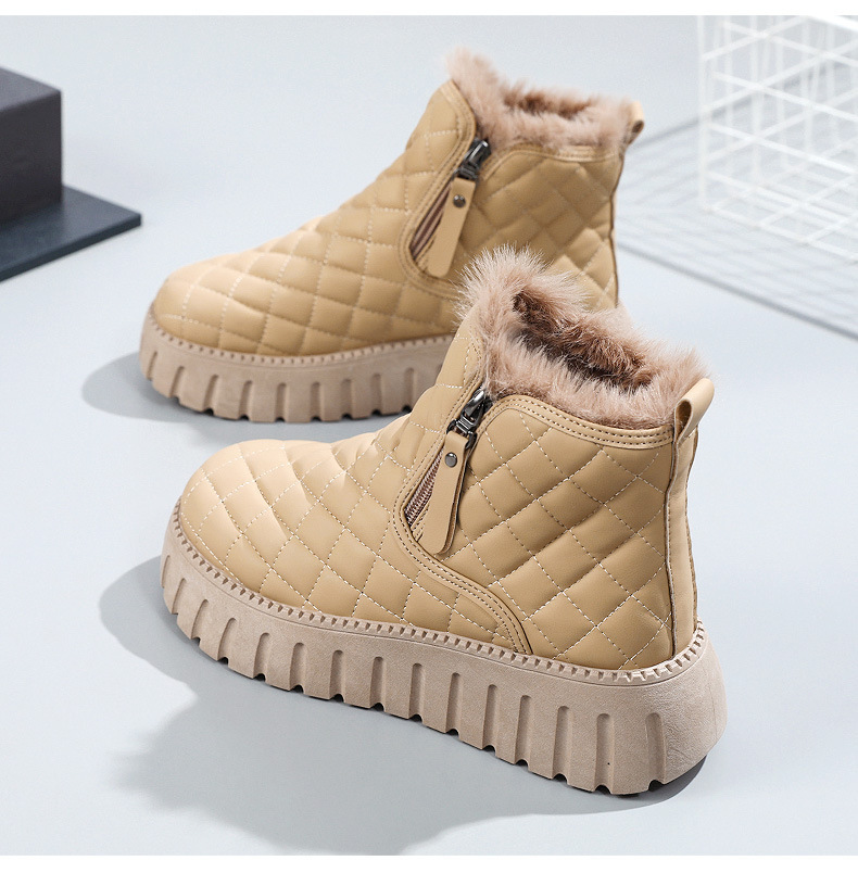أحذية شتوية نسائية مبطنة بالفرو, سميكة أنيقة مناسبة للأنشطة الخارجية