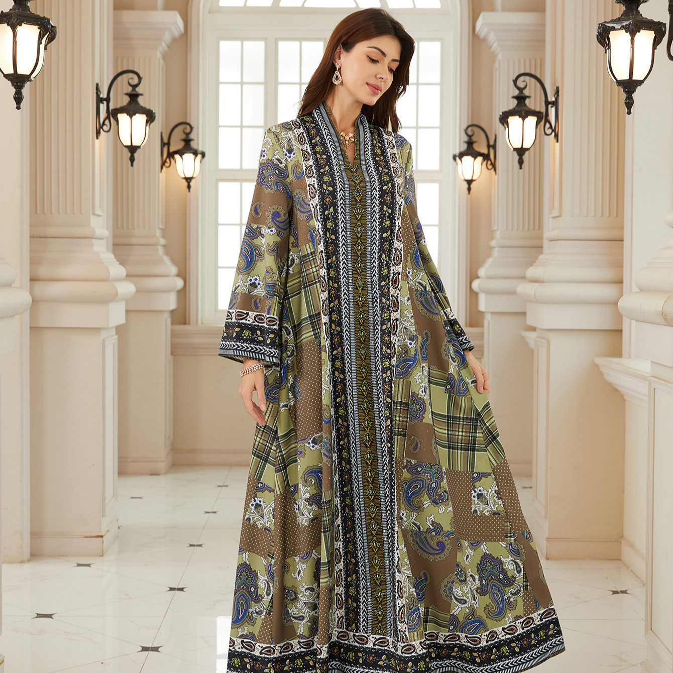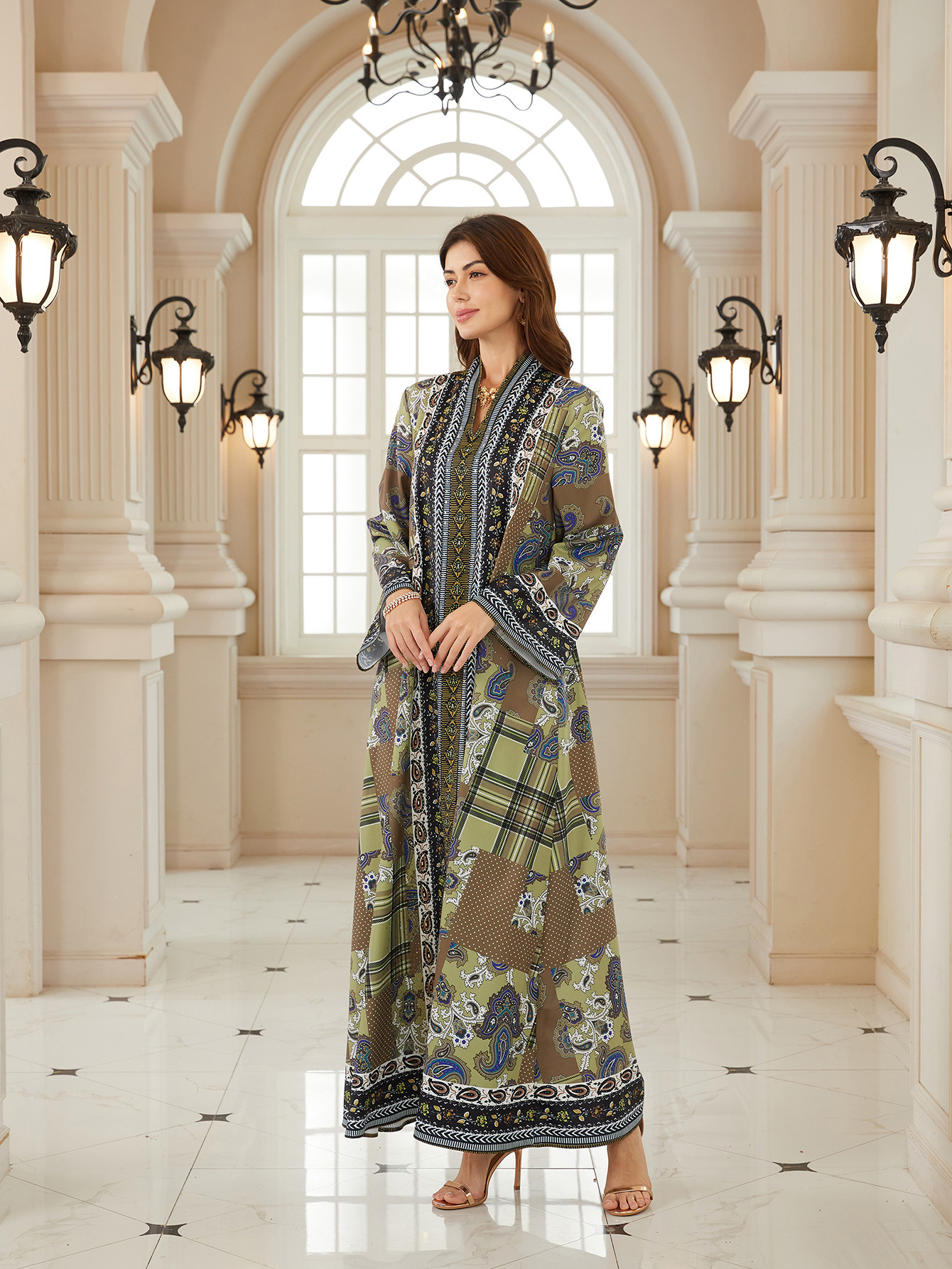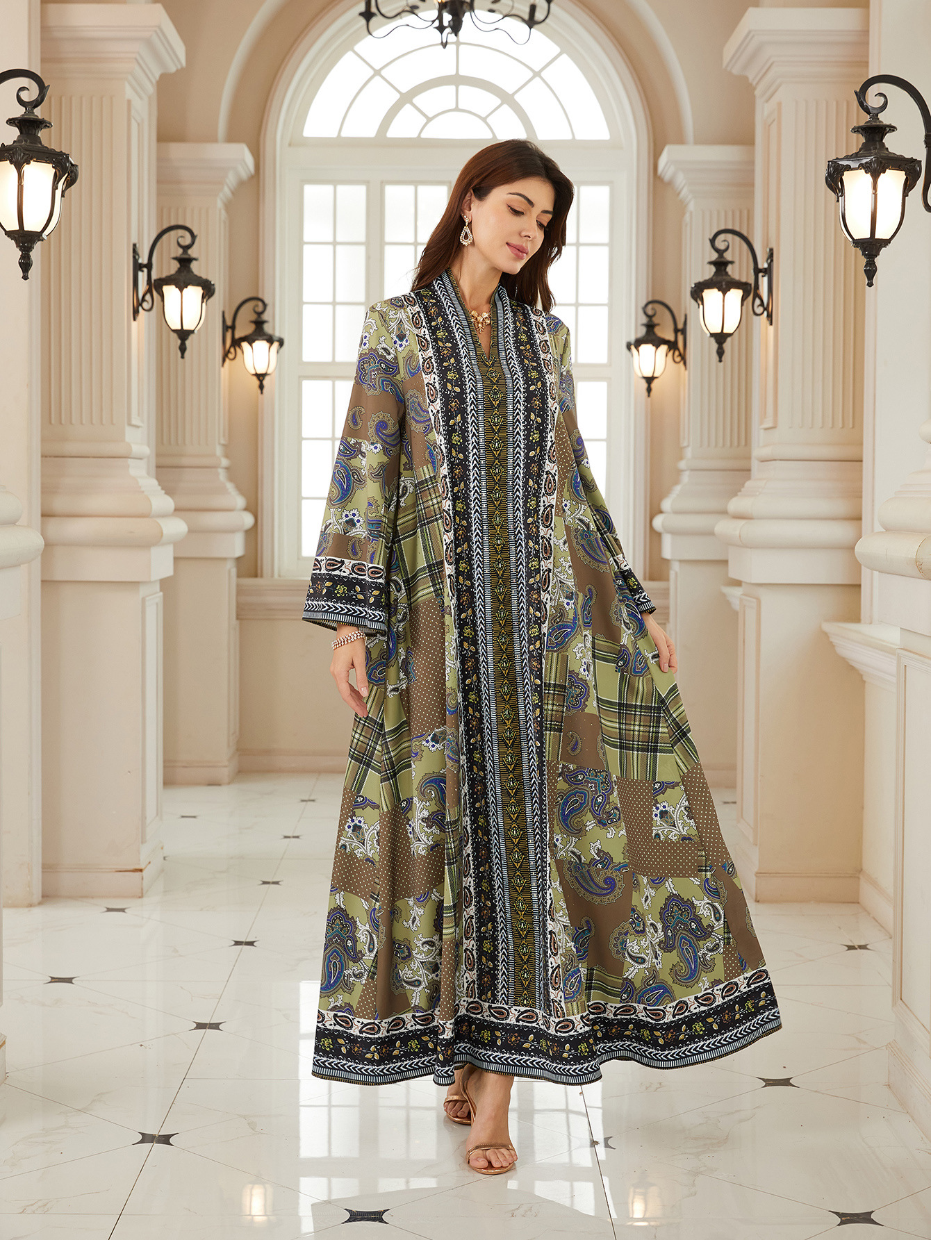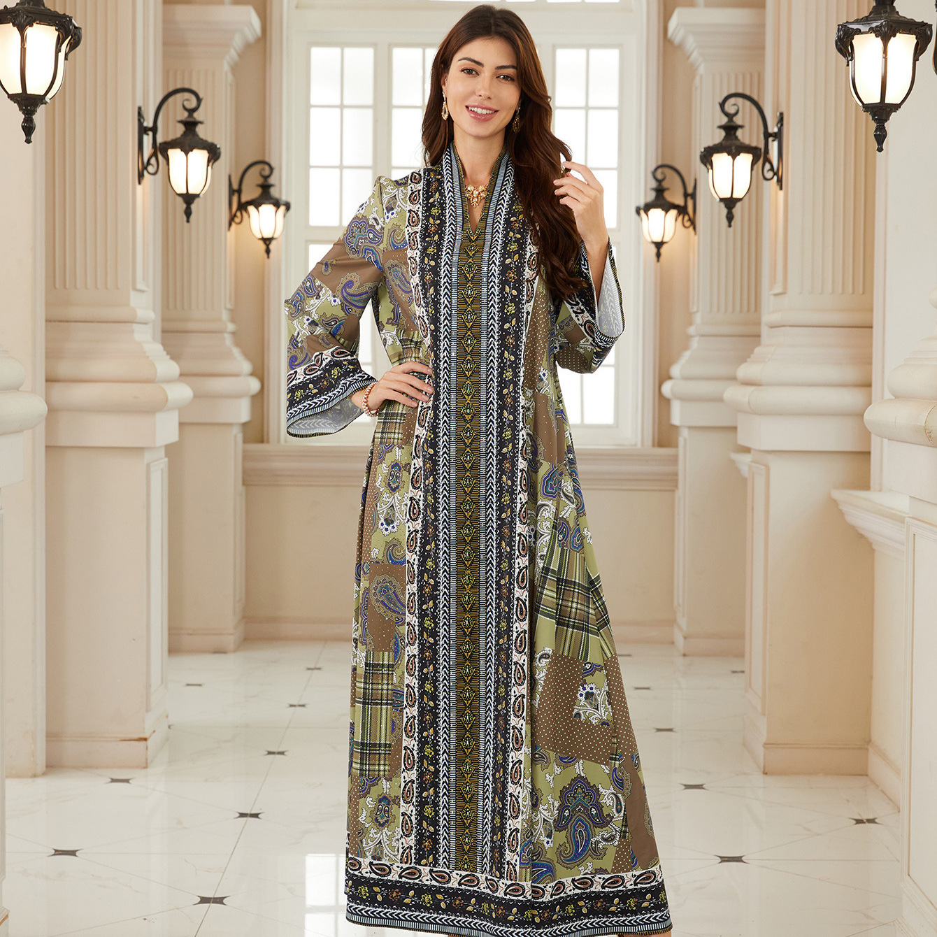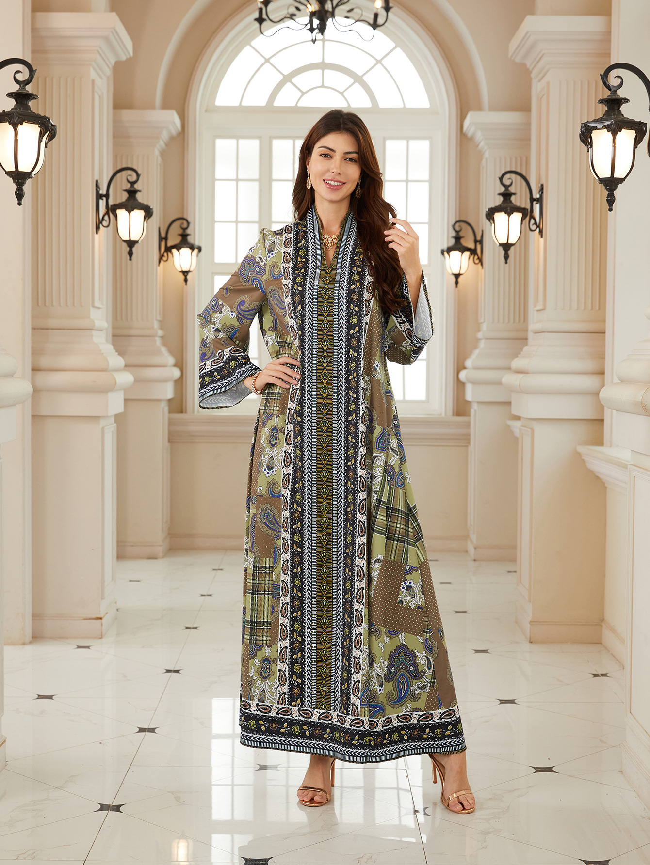 كم طويل الطباعة حجر الراين الساخن