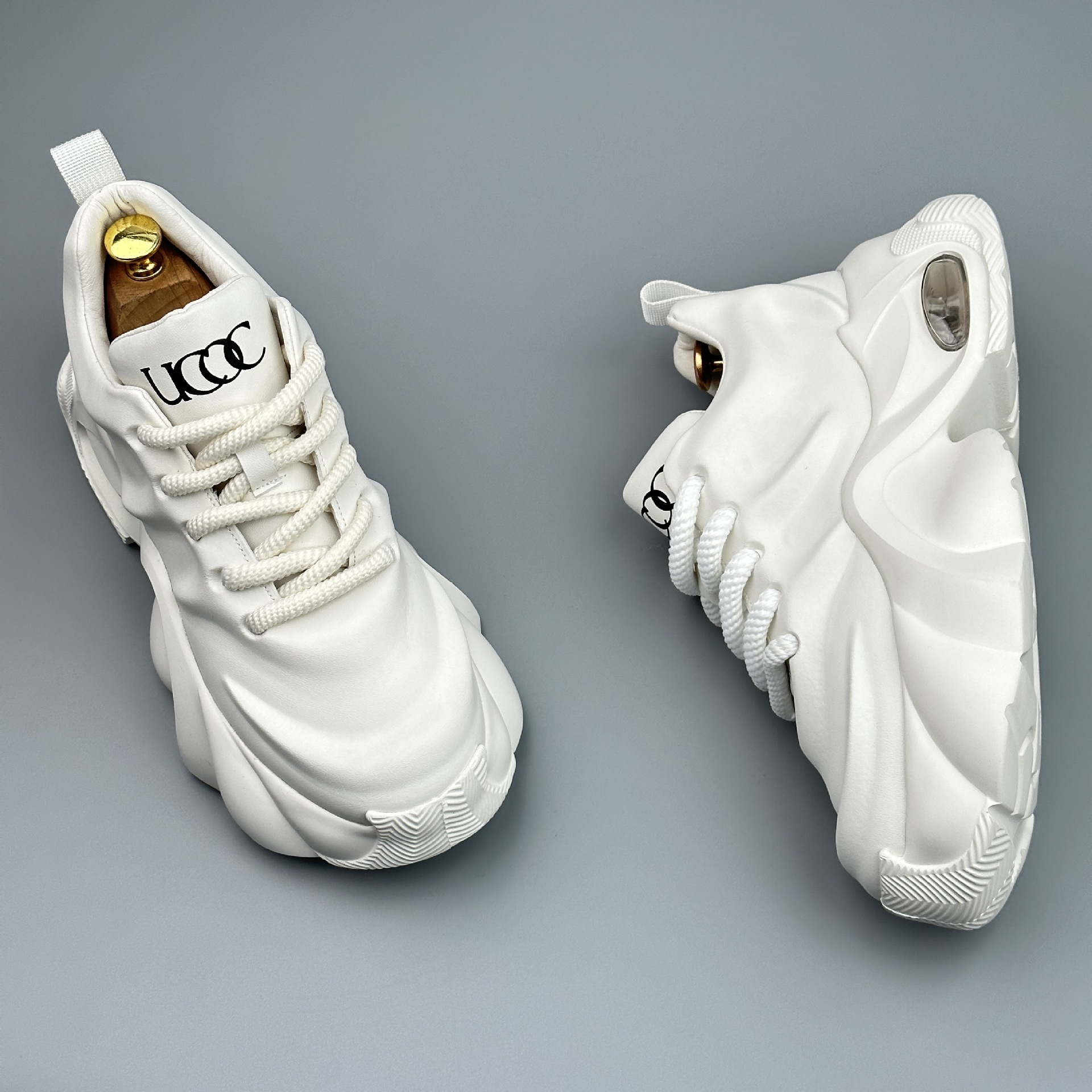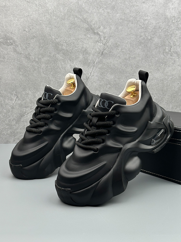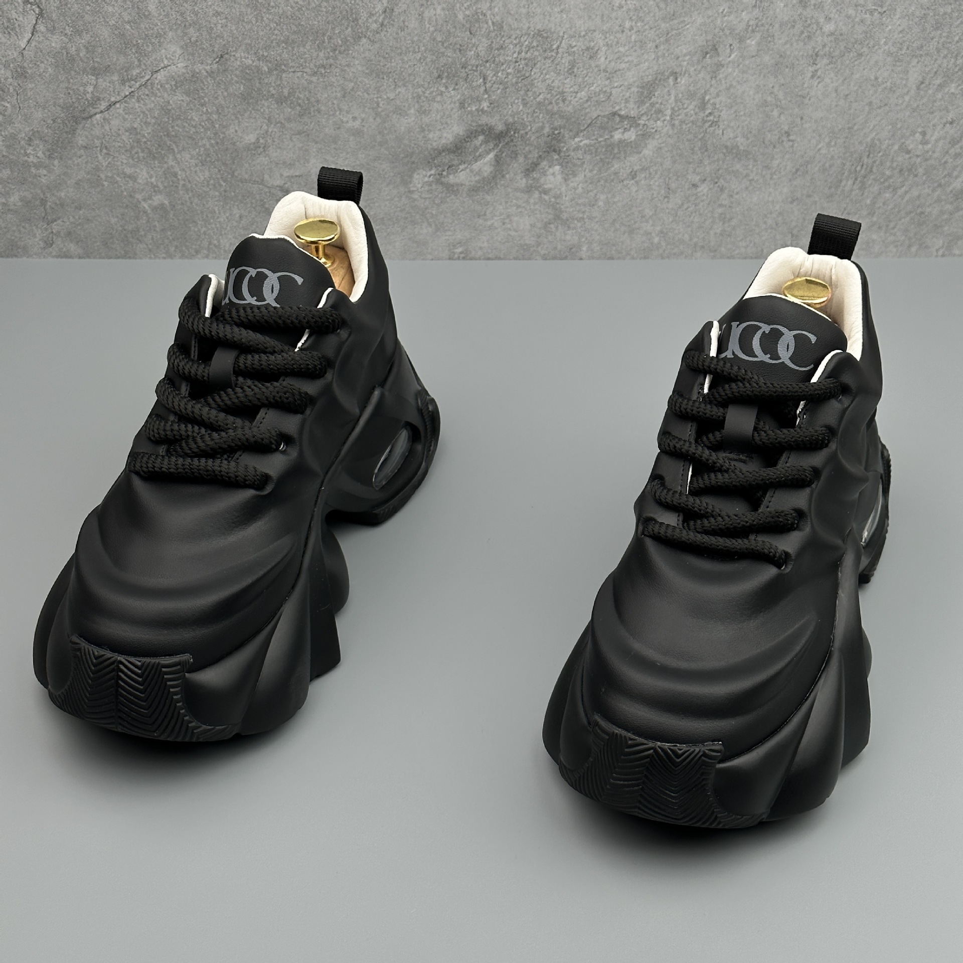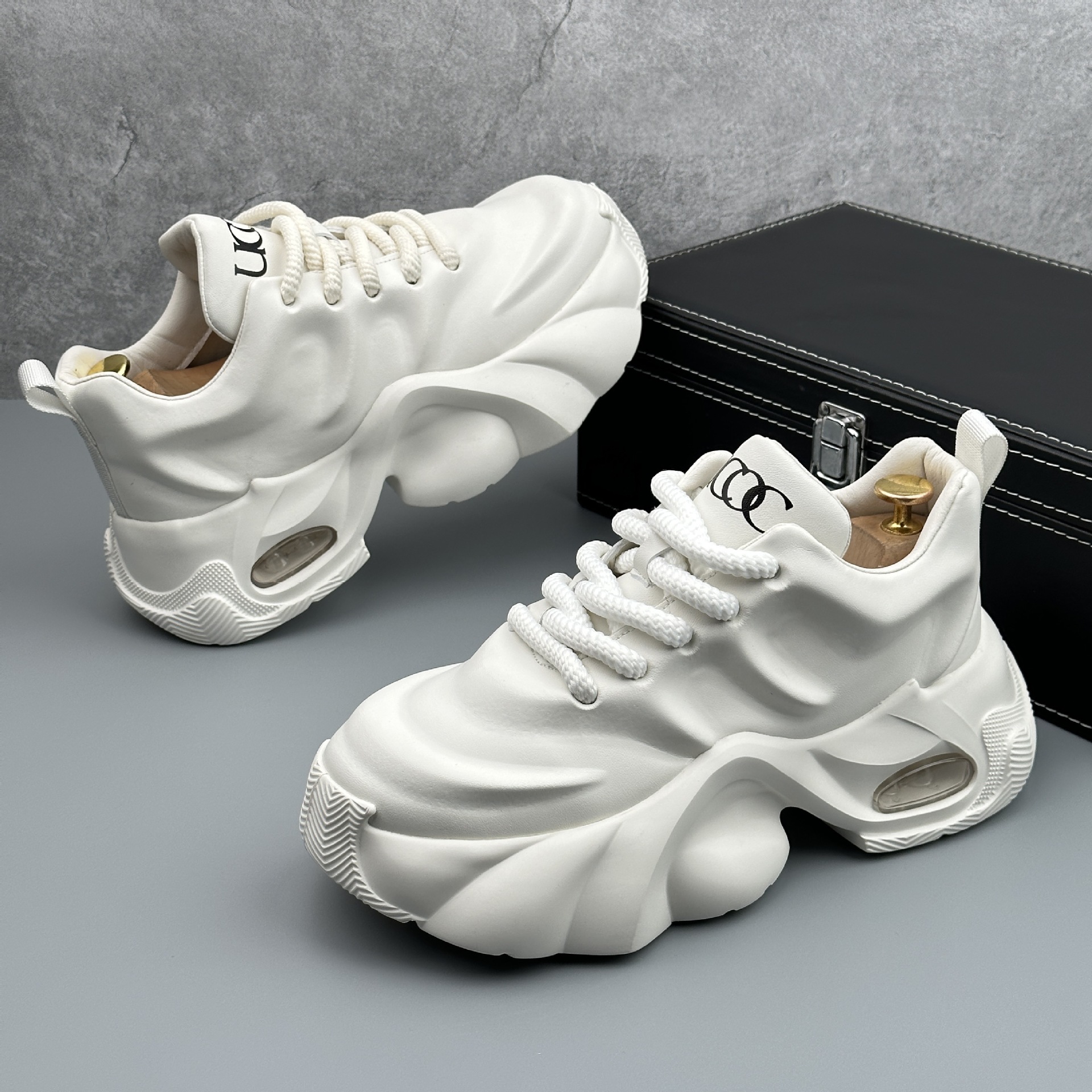 حذاء رجالي بنعل سميك ومنصة مريحة - أحذية رياضية منخفضة القمة مع رباط ونعل مبطن، نعل سميك مضاد للانزلاق، مناسب للخارج والاستخدام اليومي