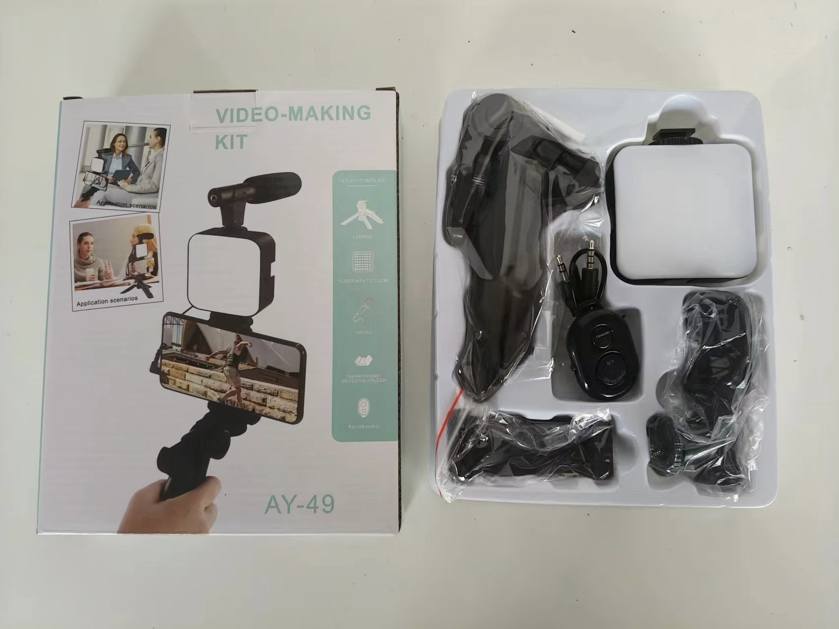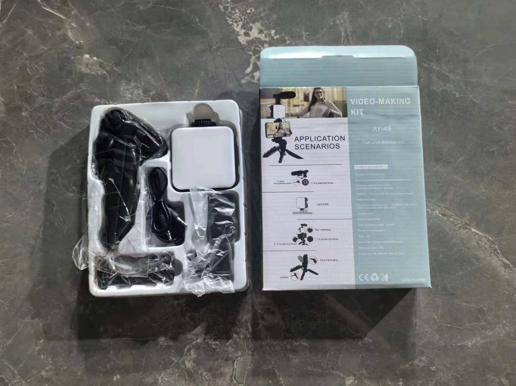 ميكروفون للبث المباش، مزود بجيب قابل للطي، طقم إضاءة تعبئة، مصباح مكتبي مربع صغير محمول باليد، مصباح تصوير فوتوغرافي صغير للمؤتمرات Ay49